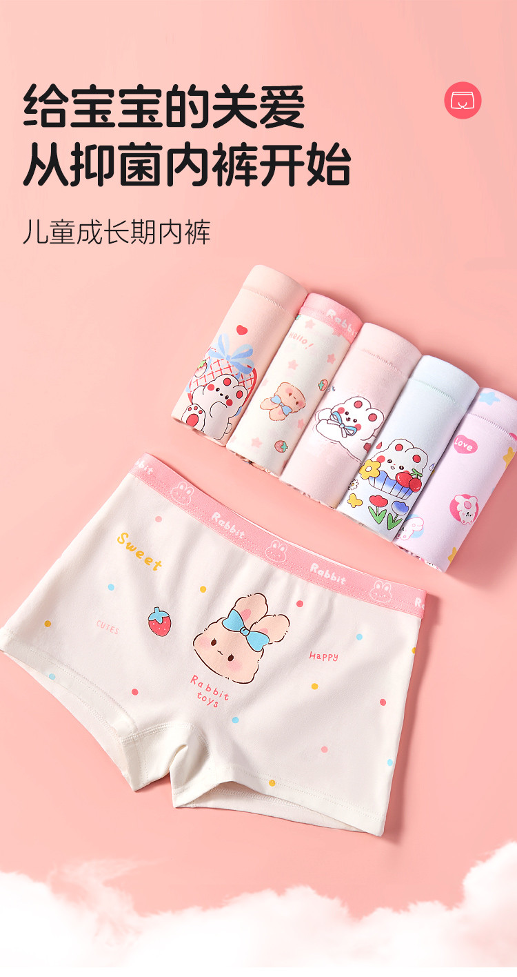 商品名称:【7A抑菌6条装】女童内裤发育期棉质卡通平角裤儿童内裤中大童 445707