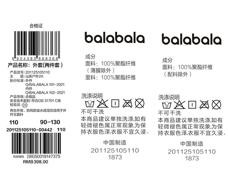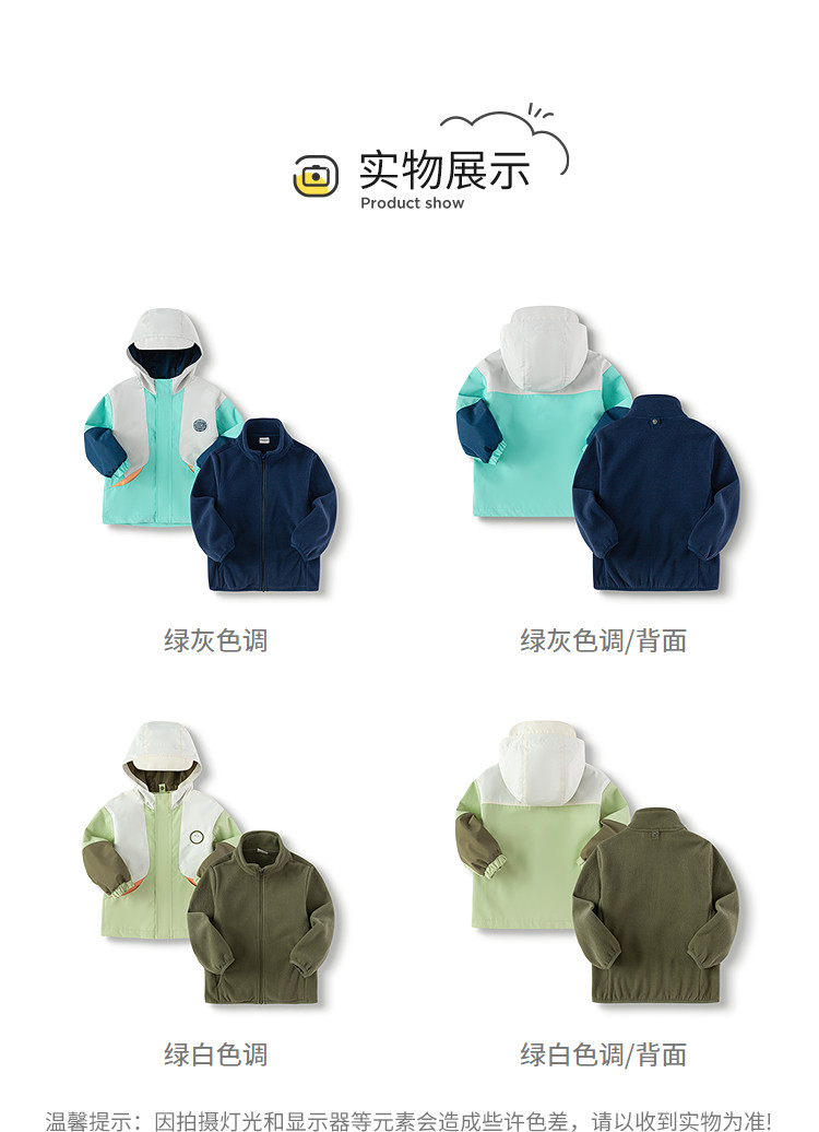 商品名称:巴拉巴拉童装儿童外套男童软壳衣2025春秋新款两件套一衣三穿 690501