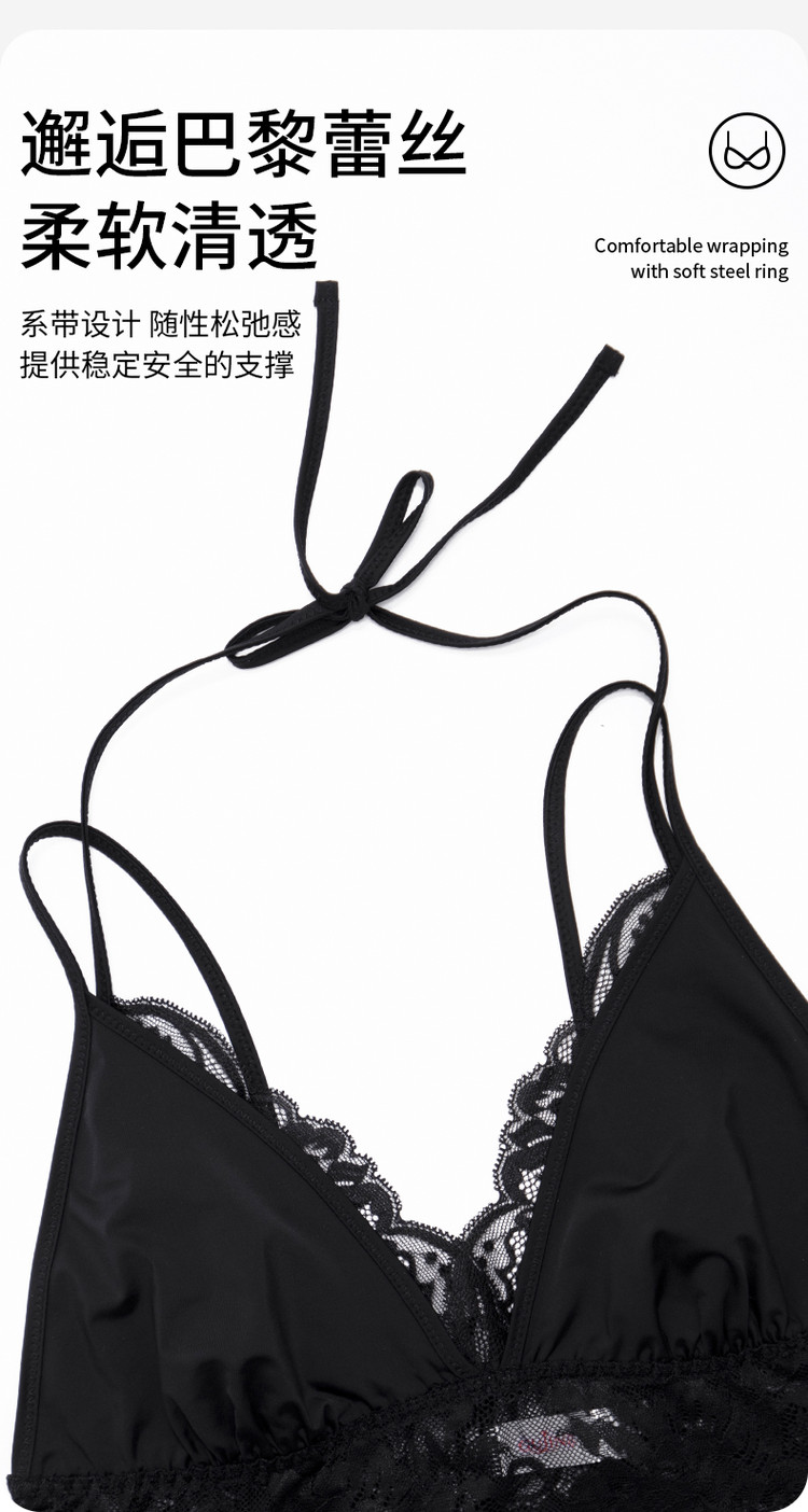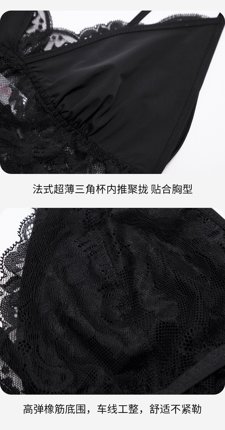 商品名称:性感法式三角杯无钢圈蕾丝捡漏比基尼内衣薄杯调整型胸罩女士文胸 876043