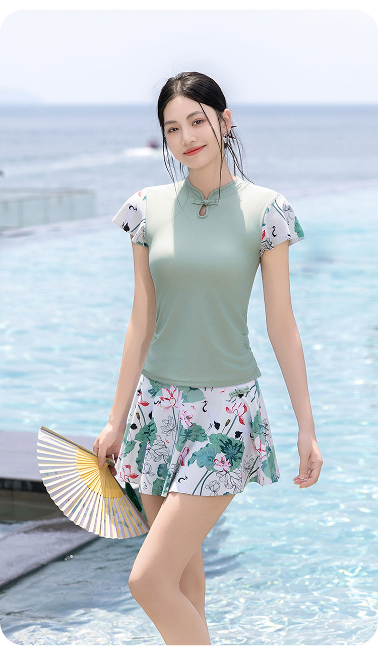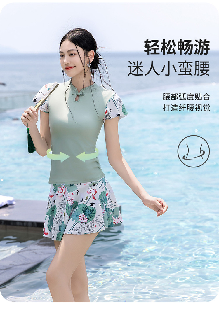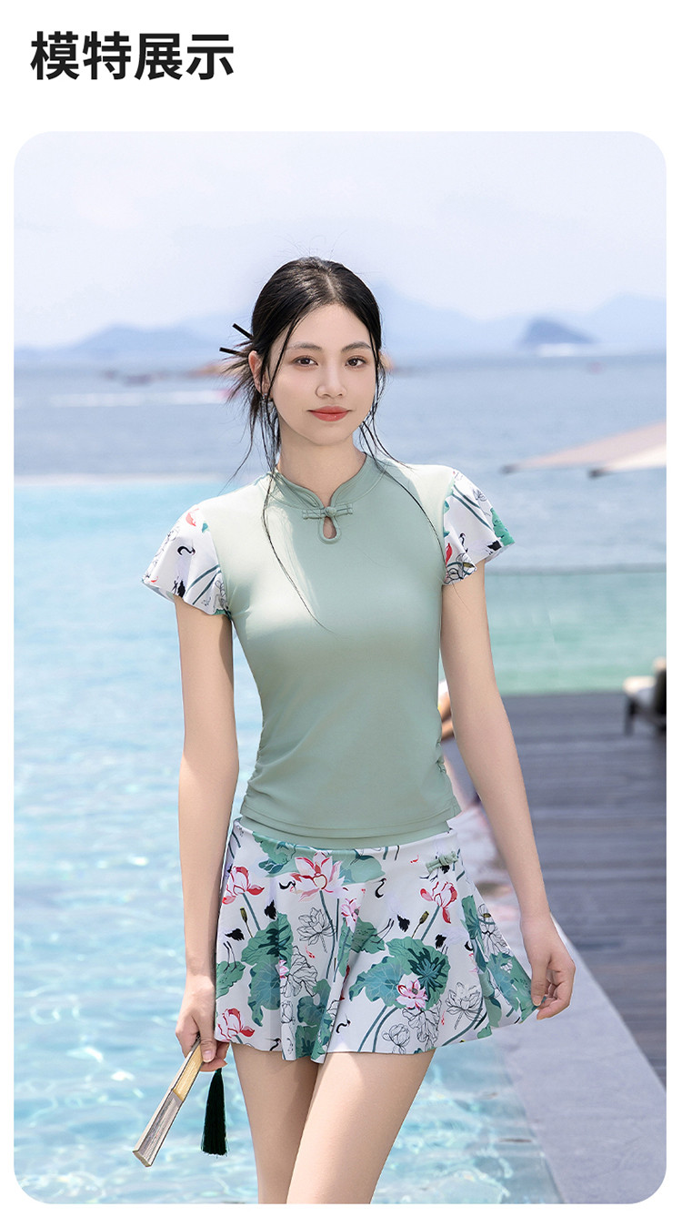 泳衣女士高级感国风分体泳衣裙式遮肚显瘦沙滩海边泡温泉度假泳衣 679827