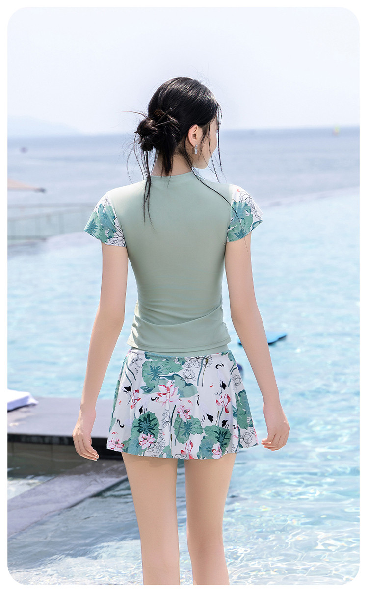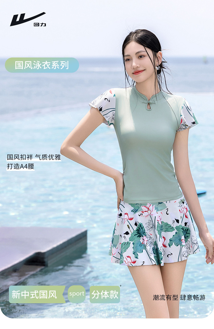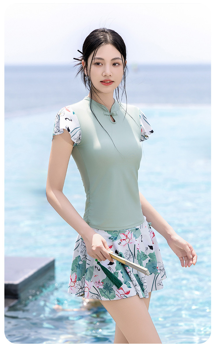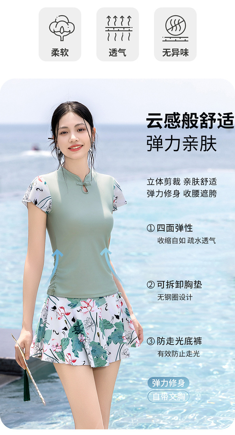 泳衣女士高级感国风分体泳衣裙式遮肚显瘦沙滩海边泡温泉度假泳衣 679827