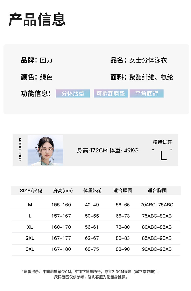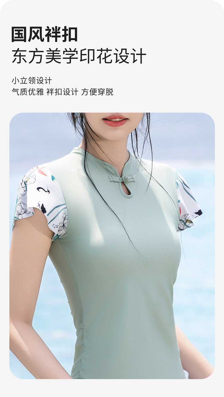 商品名称:泳衣女士高级感国风分体泳衣裙式遮肚显瘦沙滩海边泡温泉度假泳衣 679827