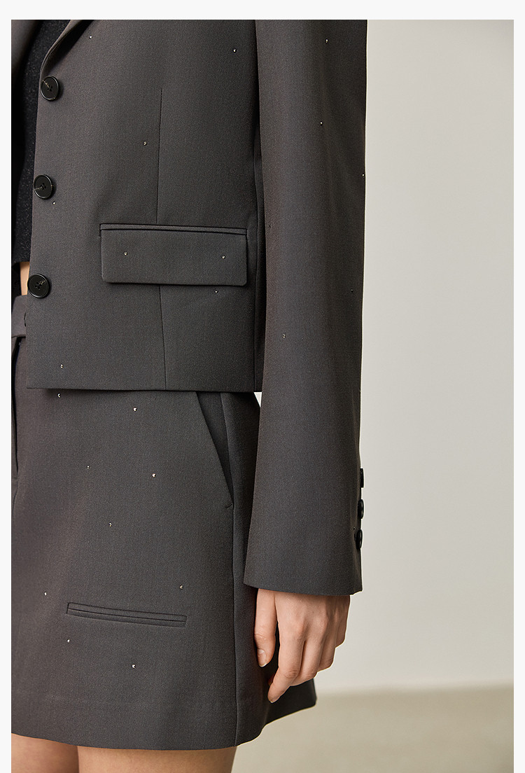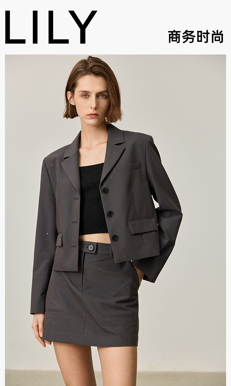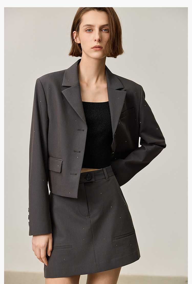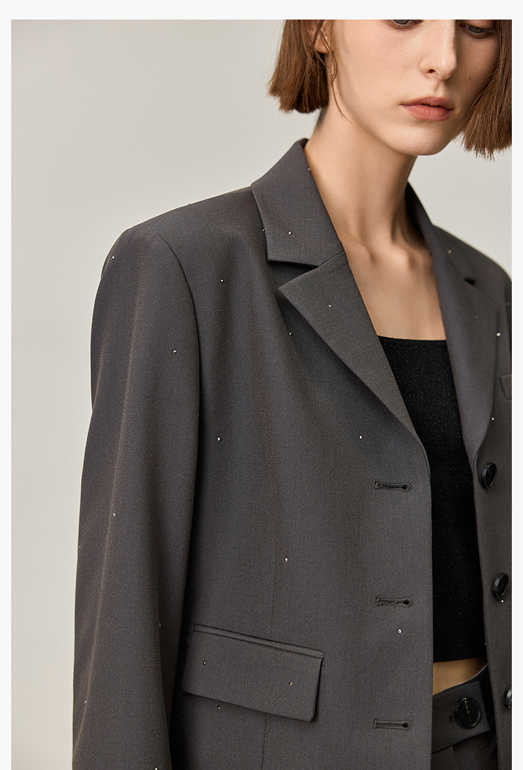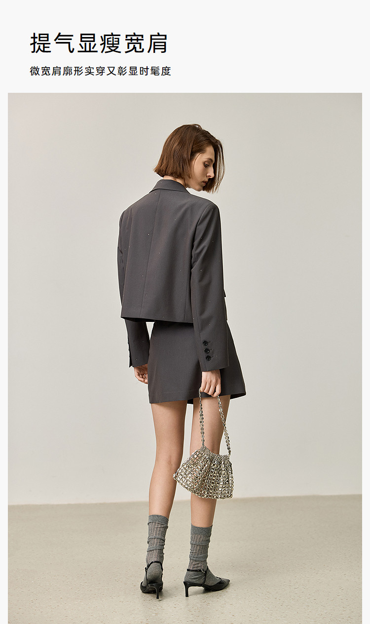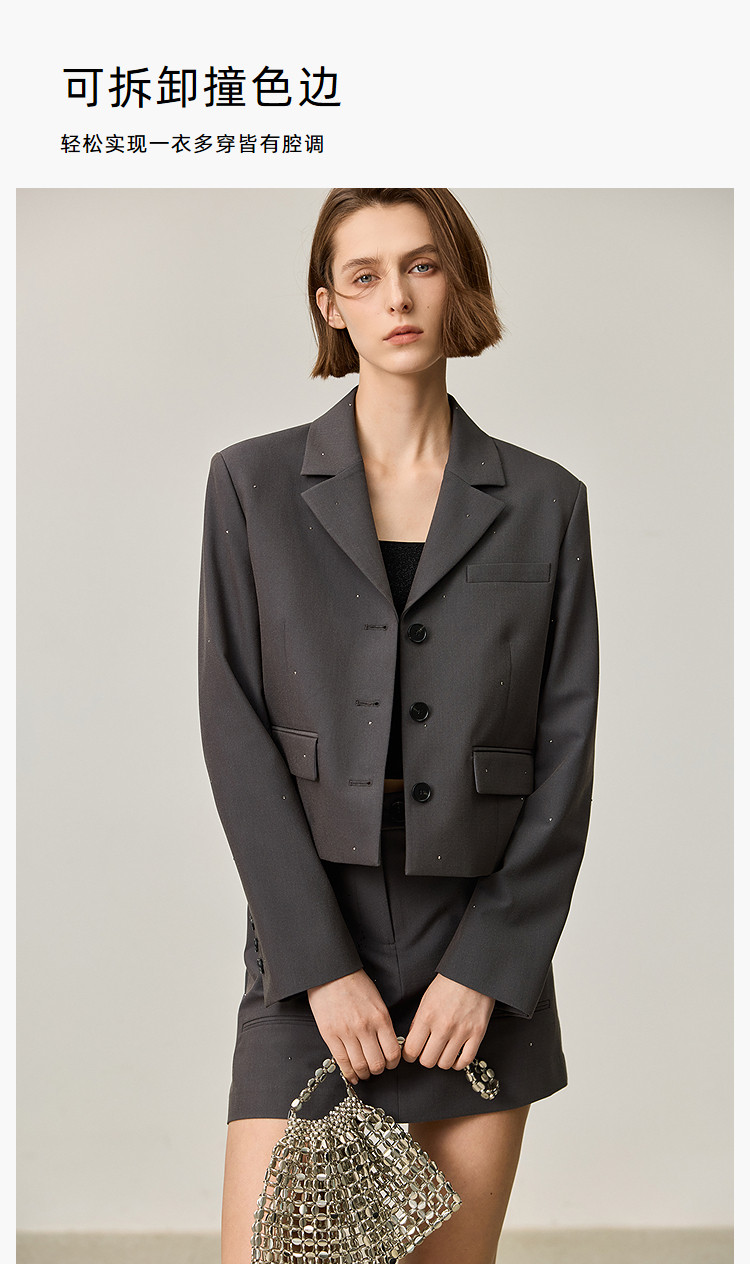 【商场同款】2025春格雷系高智摩登烫钻通勤设计感西装外套女 210267