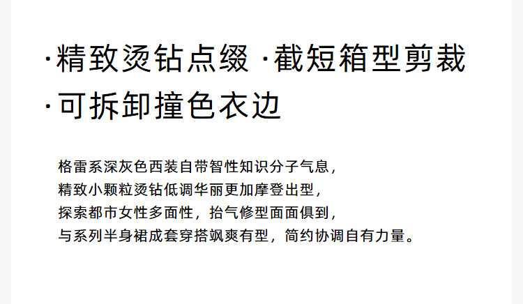 商品名称:【商场同款】2025春格雷系高智摩登烫钻通勤设计感西装外套女 210267