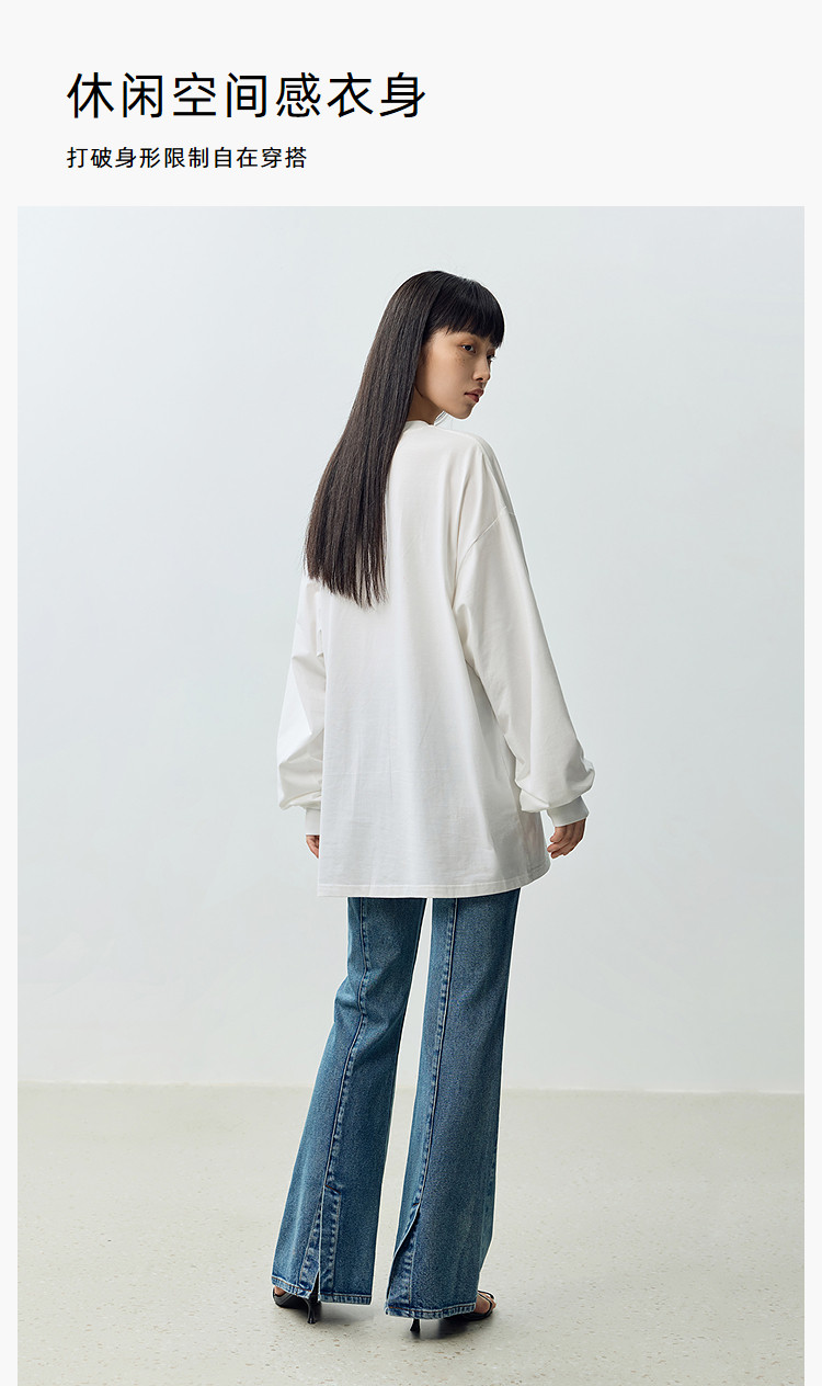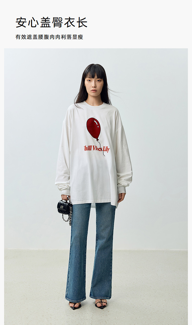 【庄晓君联名】2025春季气球字母百搭通勤全棉长袖T恤女 134043