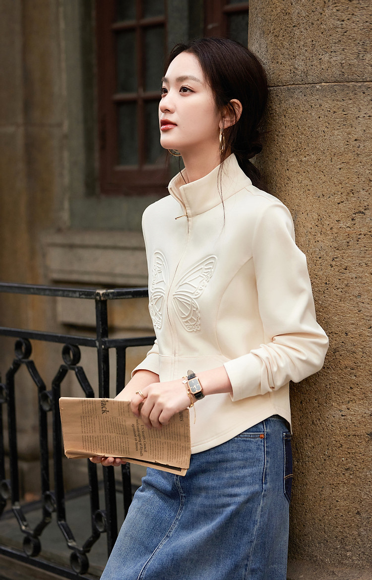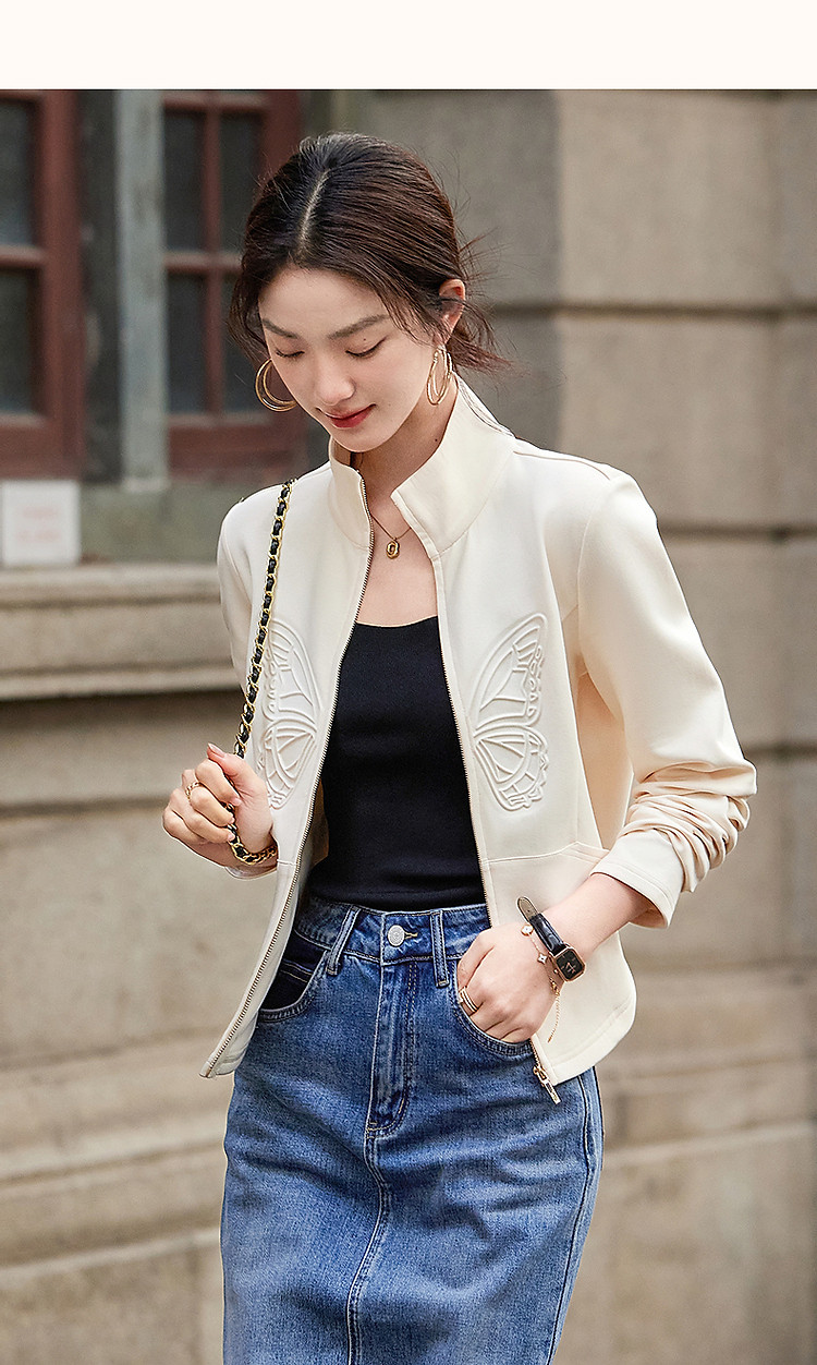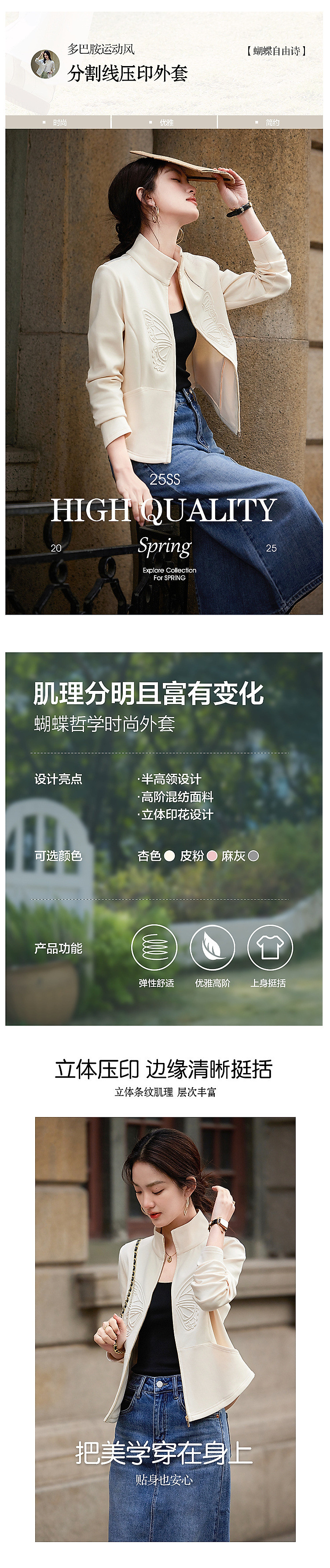 商品名称:【蝴蝶自由诗】春多巴胺运动风云感棉设计感分割线压印外套女短款 806657