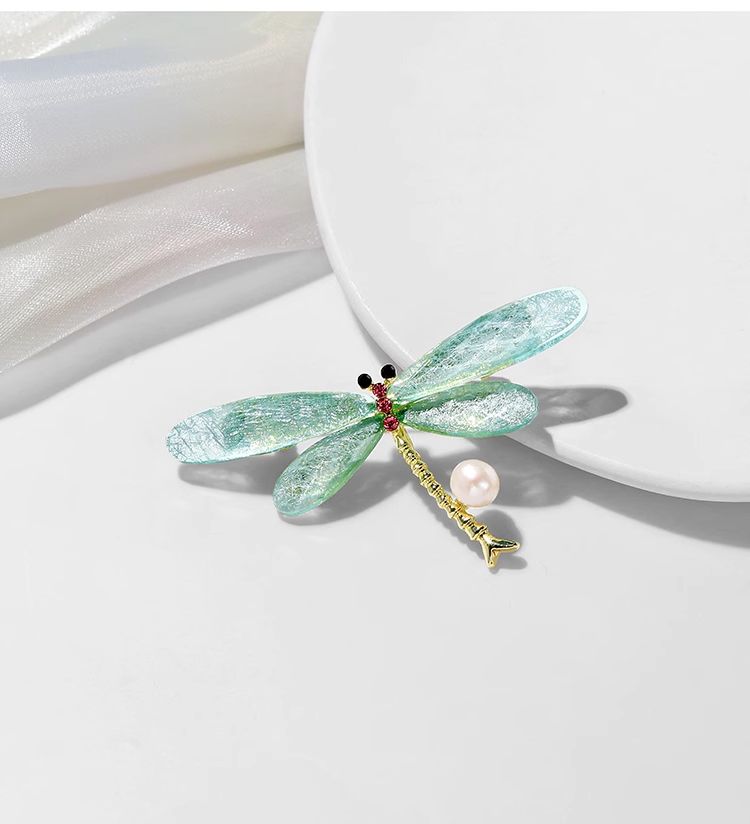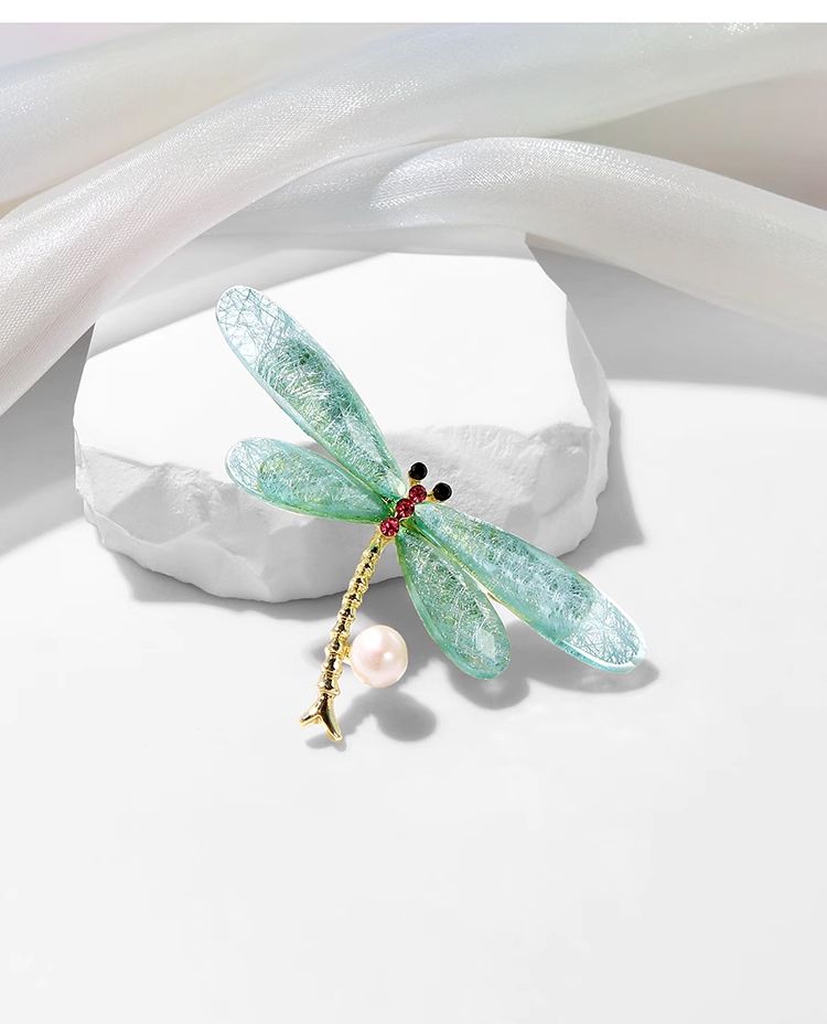 慕梵 亭亭玉立复古蓝色蜻蜓淡水珍珠胸针