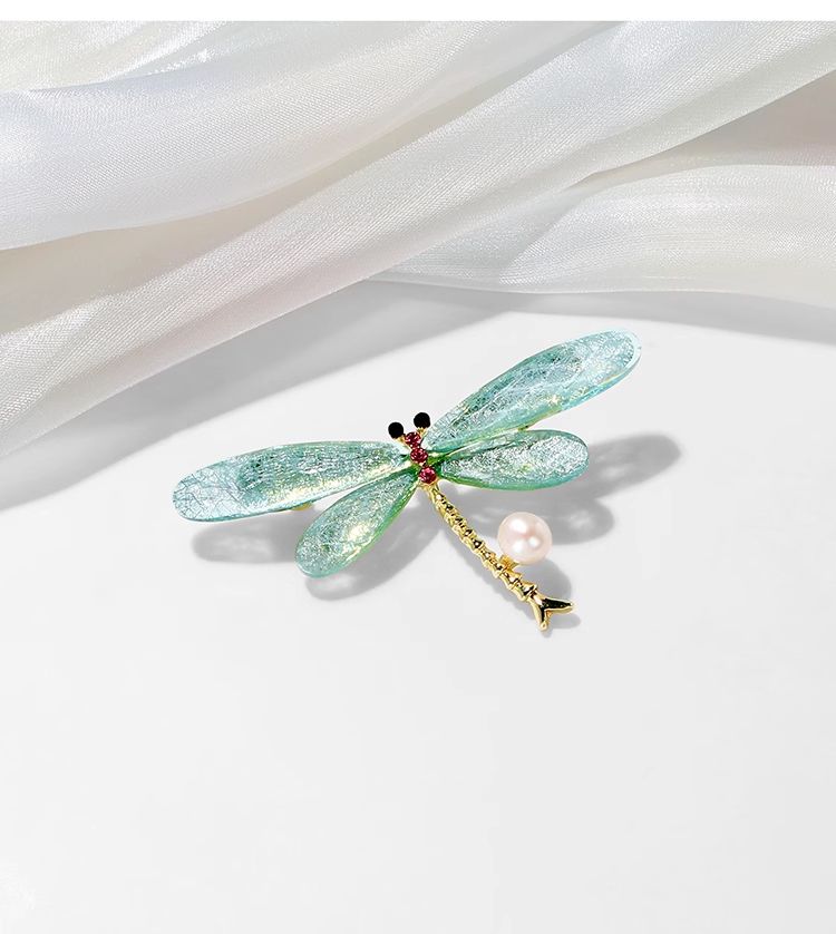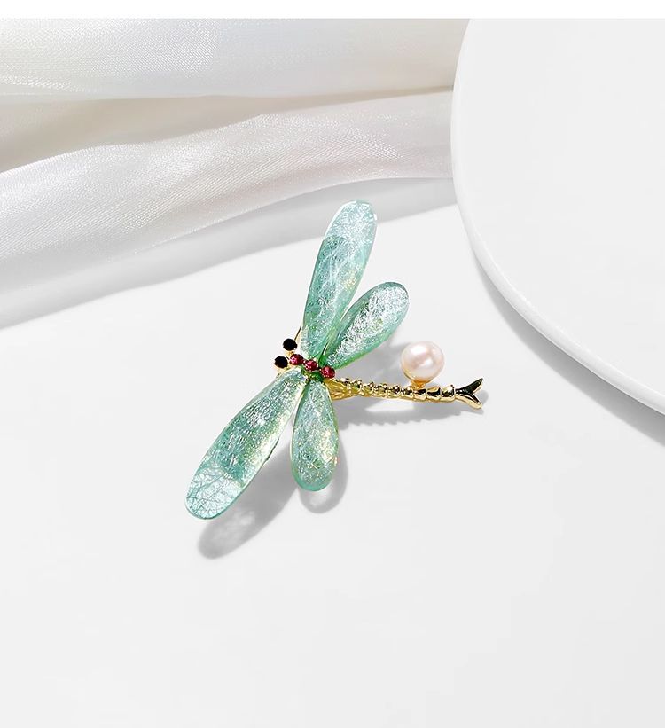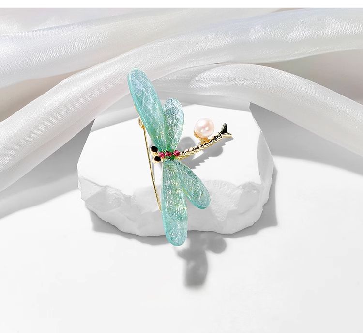 商品名称:慕梵 亭亭玉立复古蓝色蜻蜓淡水珍珠胸针
