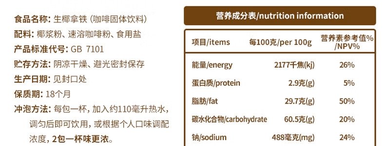 商品名称:南国 生椰拿铁 330g/袋