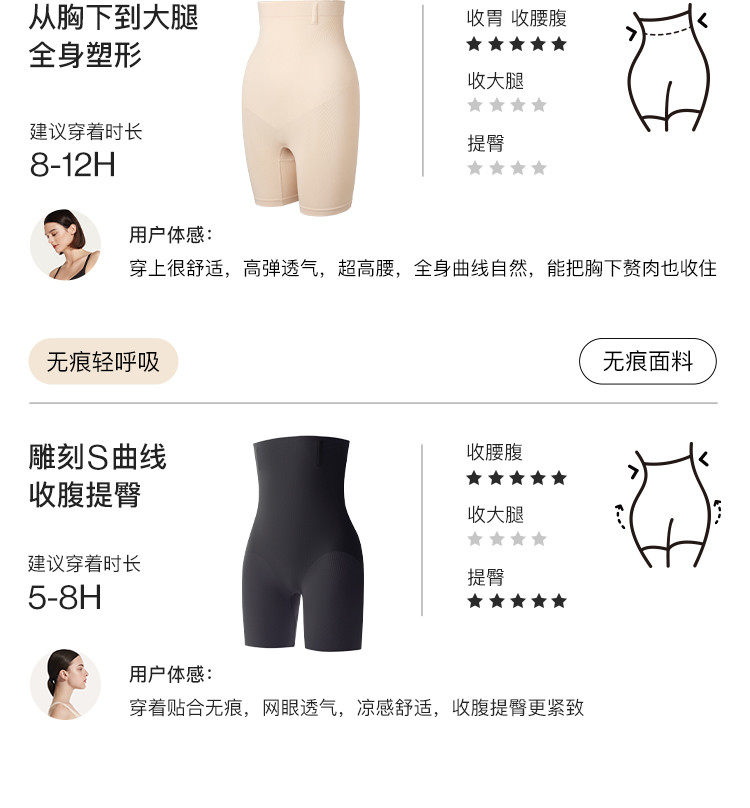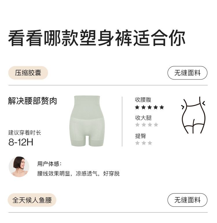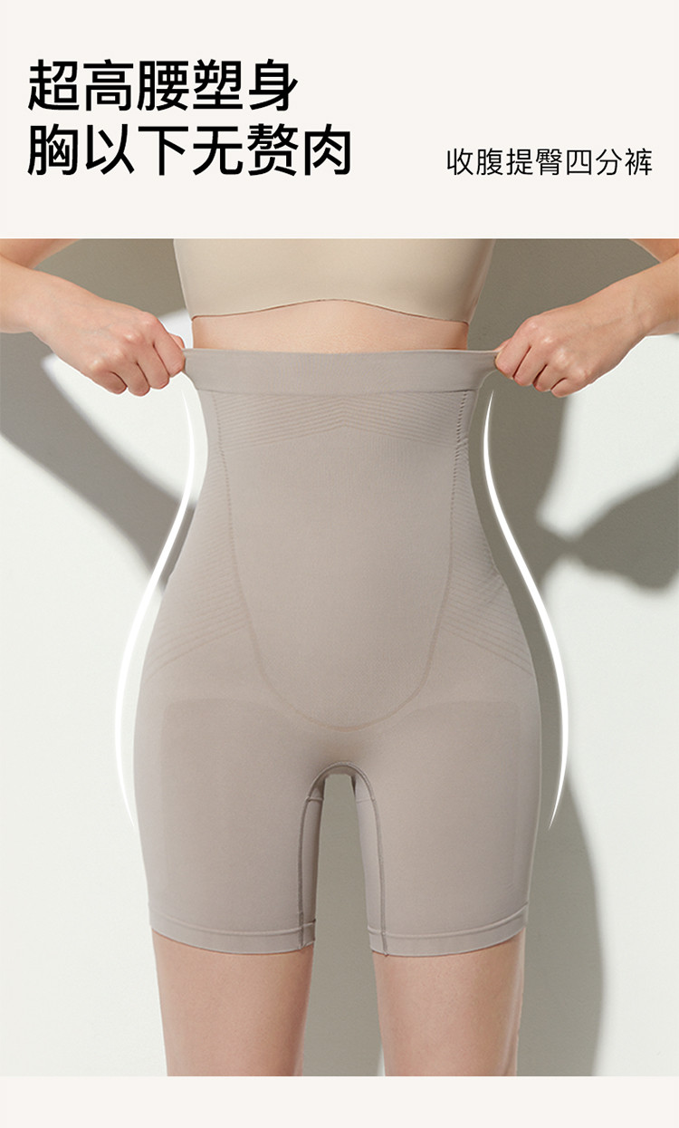 商品名称:【人鱼腰收腹提臀】超高腰塑身裤隐形无痕一体织透气四分裤女 246528