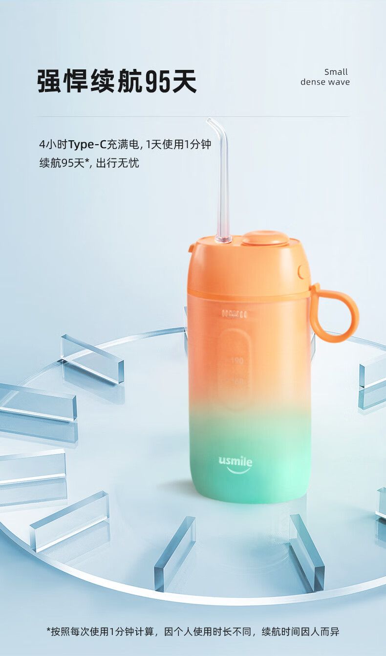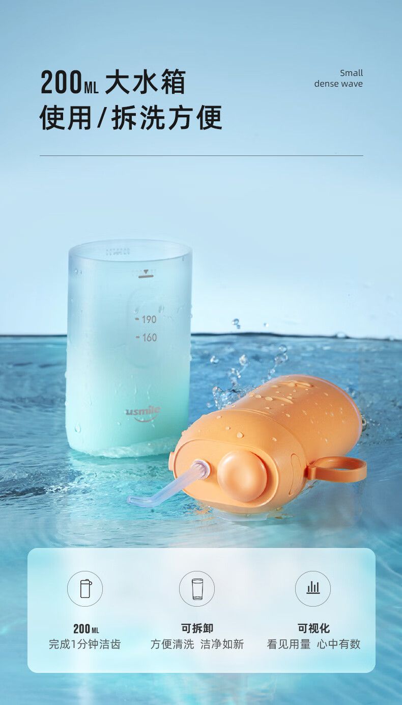 商品名称:usmile笑容加 冲牙器C1橘海 洗牙器 水牙线 洁牙器 洁牙机 伸缩便携冲牙器 密浪冲牙器