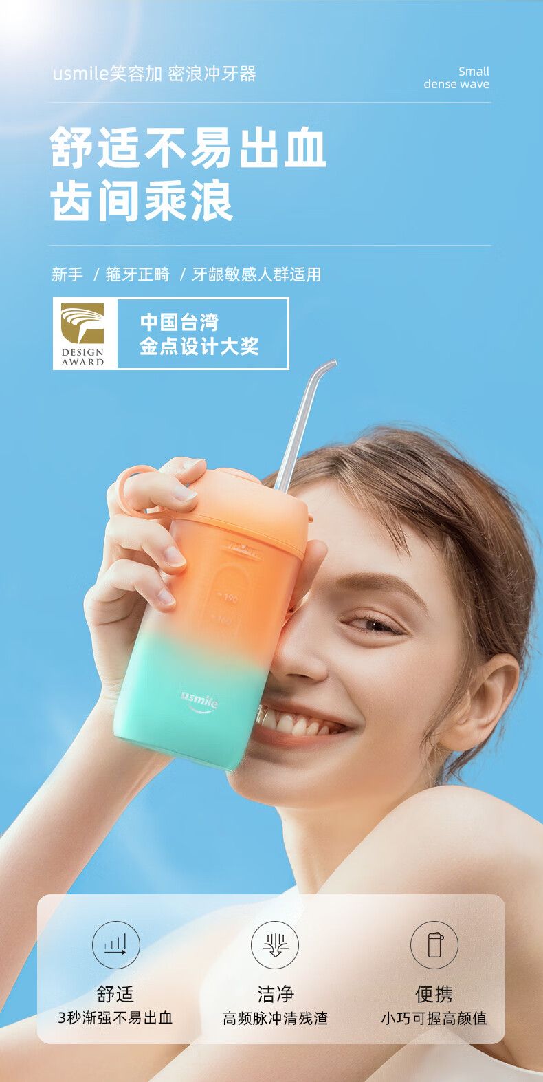 usmile笑容加 冲牙器C1橘海 洗牙器 水牙线 洁牙器 洁牙机 伸缩便携冲牙器 密浪冲牙器