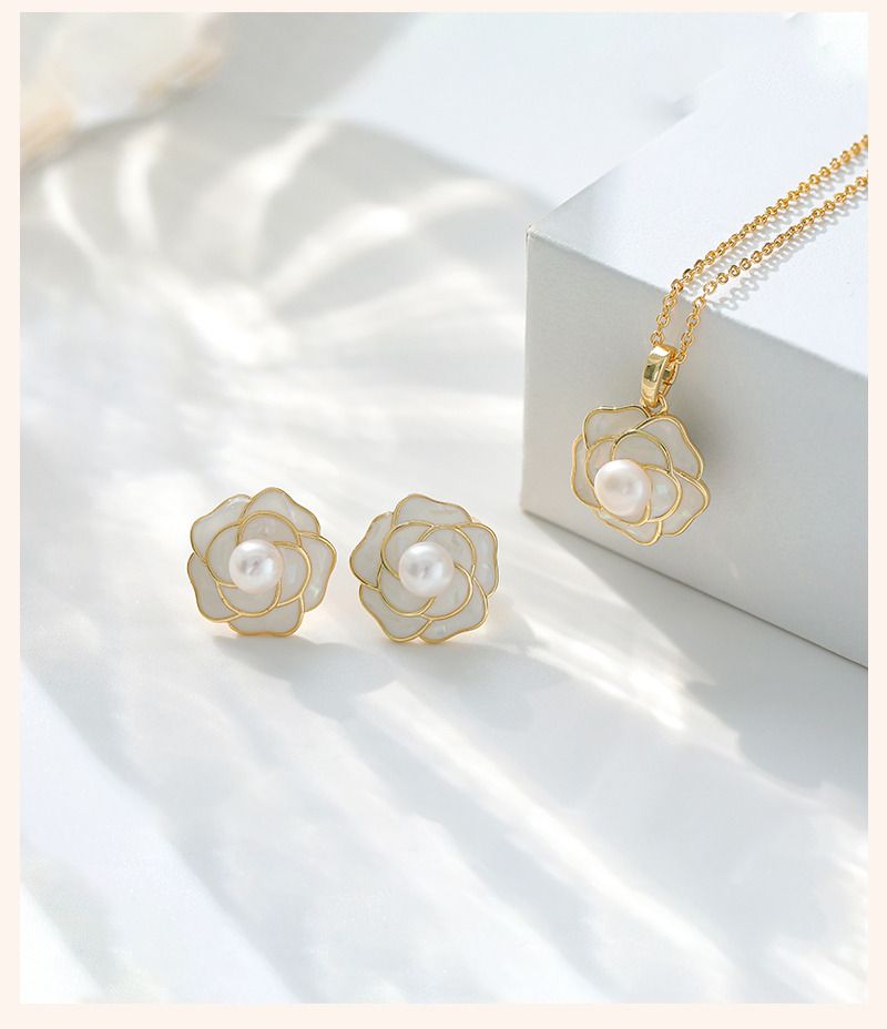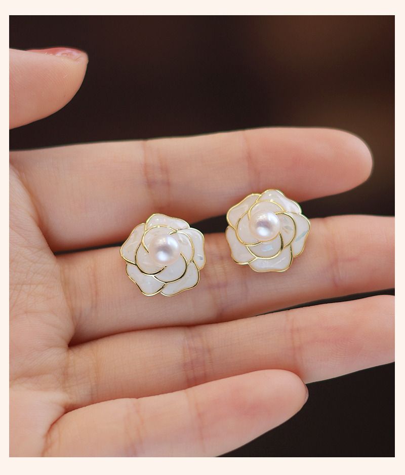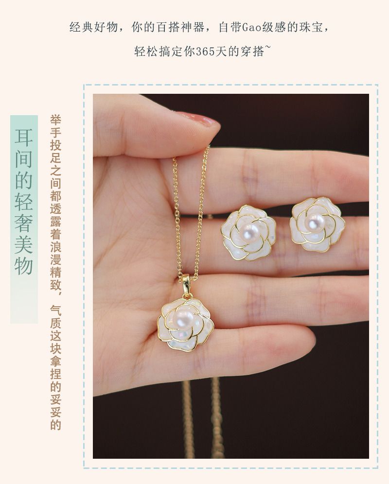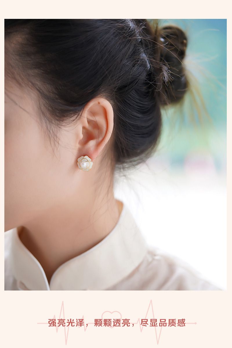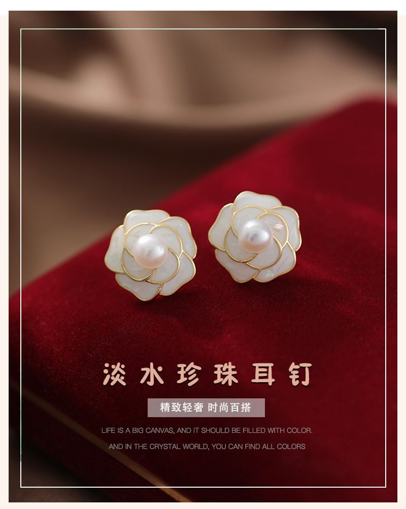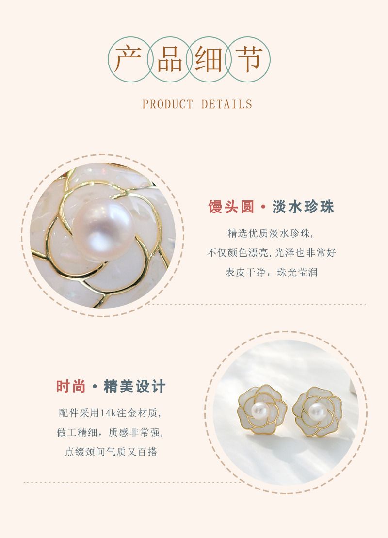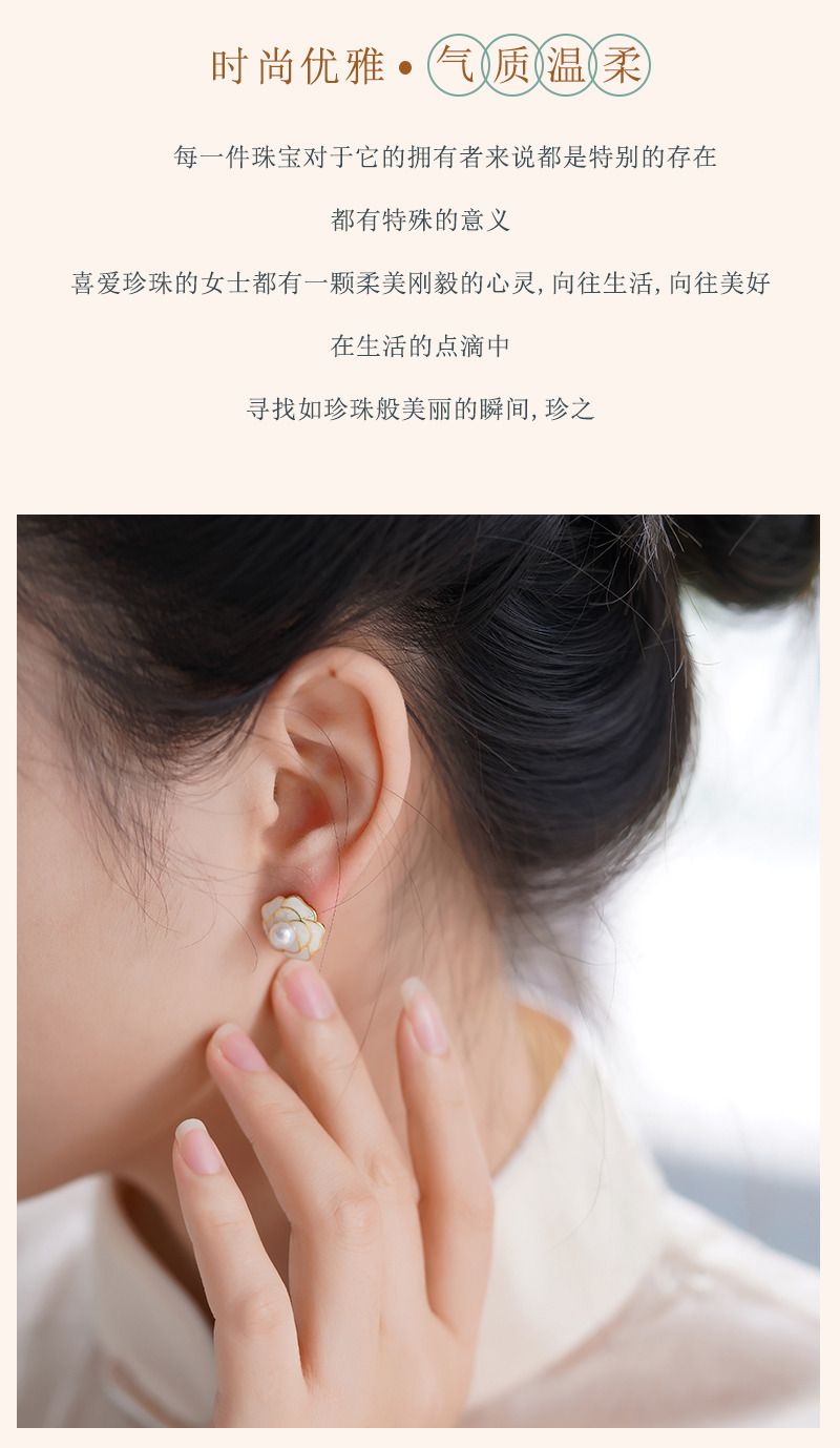 商品名称:慕梵 玫瑰花滴釉工艺淡水珍珠耳环