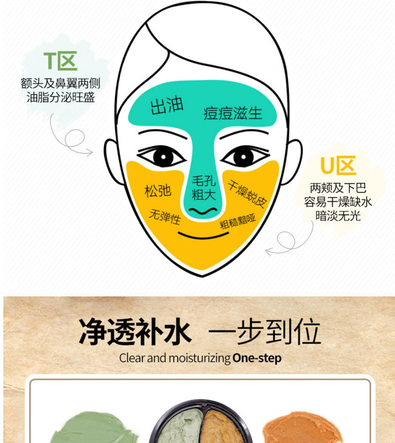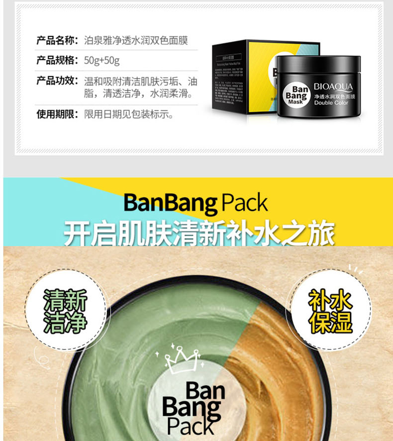 商品名称:泊泉雅净透水润双色面膜 洁净保湿水润 50g+50g
