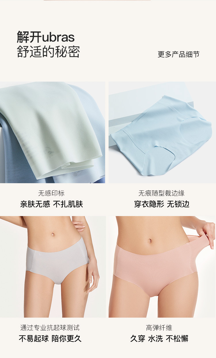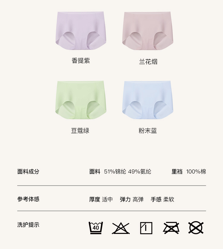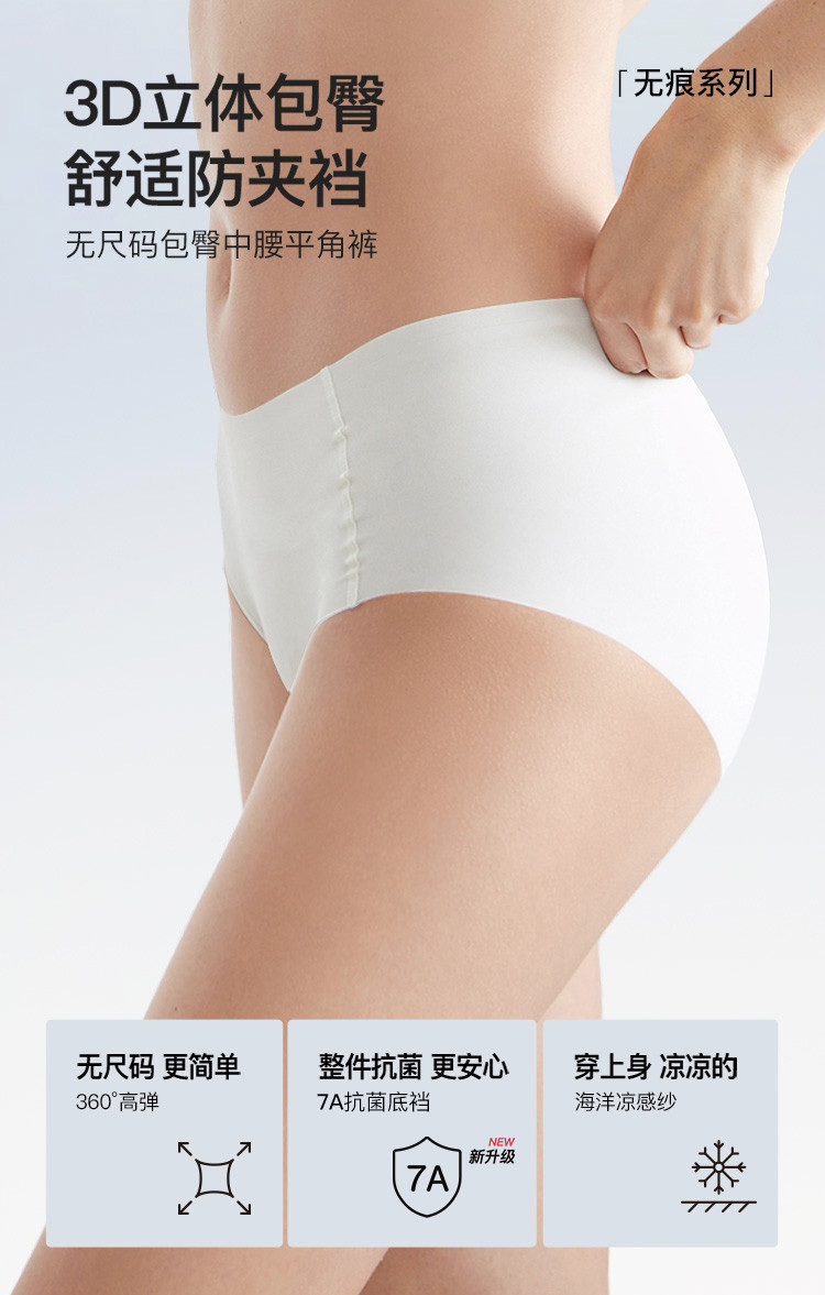 商品名称:【三条装】无尺码包臀中腰平角裤高弹抗菌无痕隐形棉里裆内裤女 244224