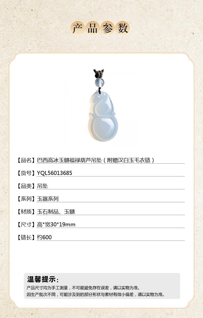 商品名称:香港周六福黄金钻石首饰巴西高冰玉髓福禄葫芦吊坠(附赠汉白玉毛衣链)