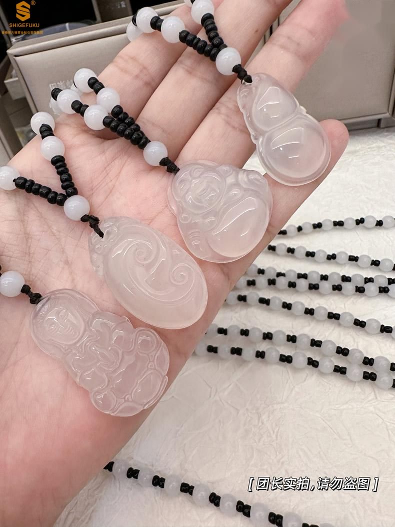 香港周六福黄金钻石首饰巴西高冰玉髓福禄葫芦吊坠(附赠汉白玉毛衣链)