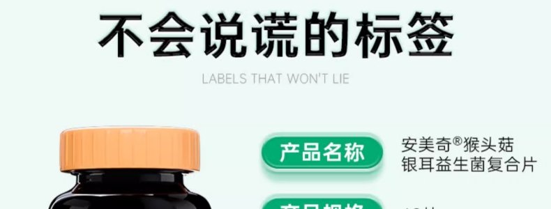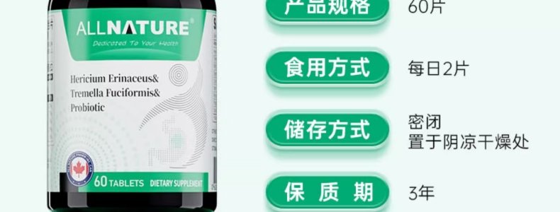 商品名称:加拿大 安美奇 原装进口猴头菇银耳益生菌复合片 60片/瓶