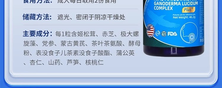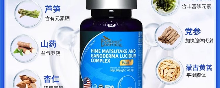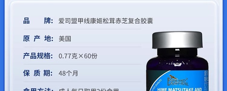 商品名称:美国 爱司盟 (Esmond Natural)原装进口姬甲线康松茸赤芝复合胶囊 60份/瓶