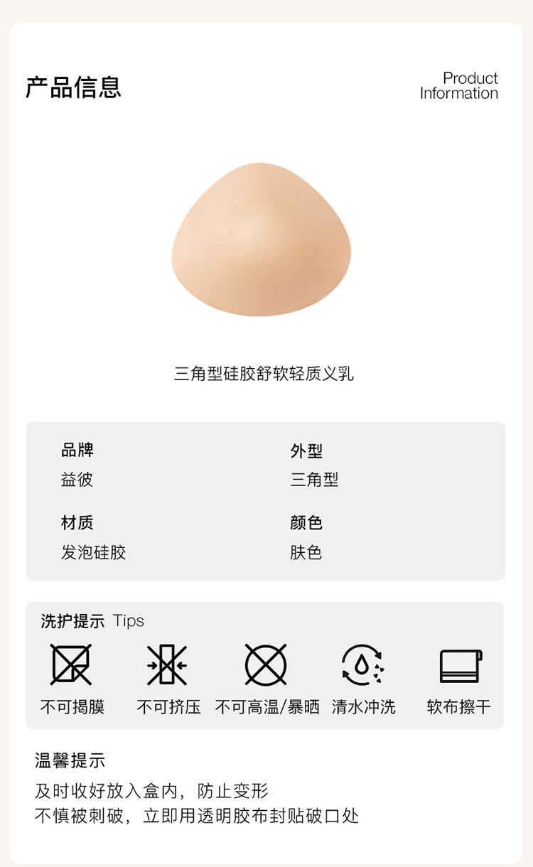 商品名称:【ubras旗下品牌ubrascare】三角型轻质硅胶义乳 496000