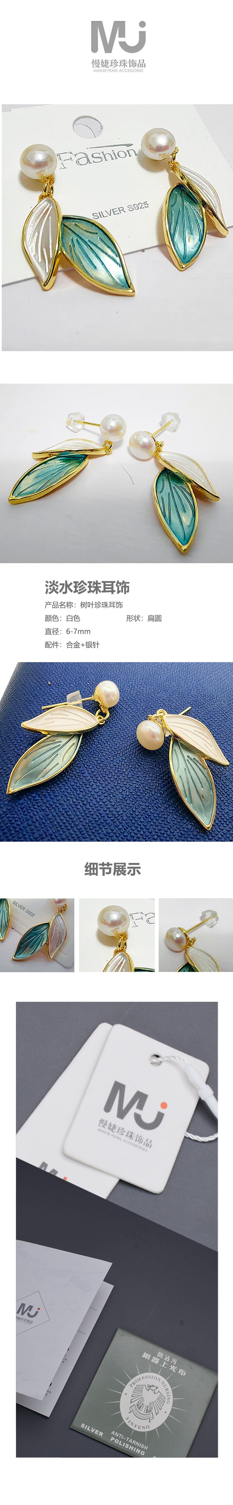 商品名称:慢婕树叶淡水珍珠耳环 6-7mm 925银针