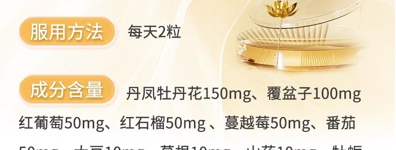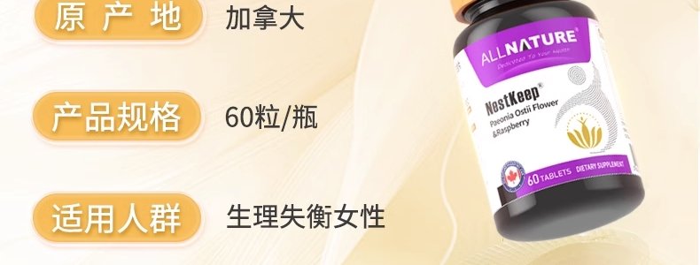 商品名称:加拿大 安美奇 原装进口葆巢韵多丹凤牡丹花覆盆子复合片 60片/瓶
