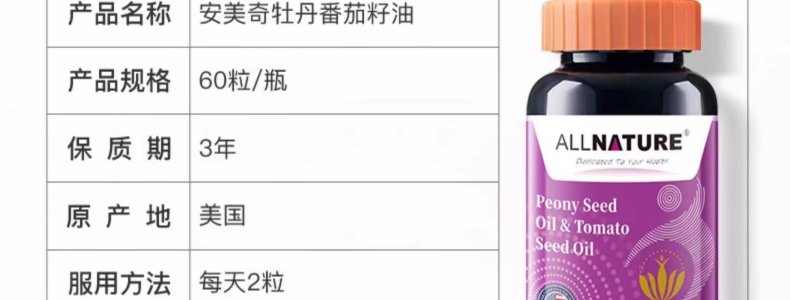 商品名称:美国 安美奇 原装进口安美奇牡丹番茄籽油 60片/瓶