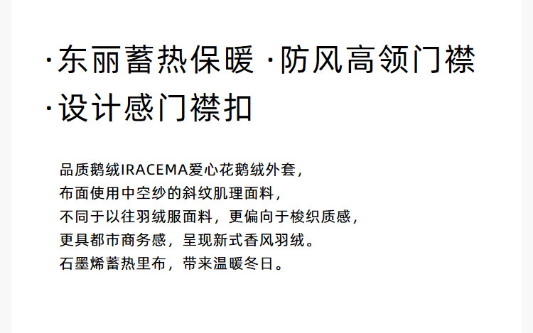商品名称:【商场同款】冬季鹅绒立领香风羽绒服外套小个子女 522459
