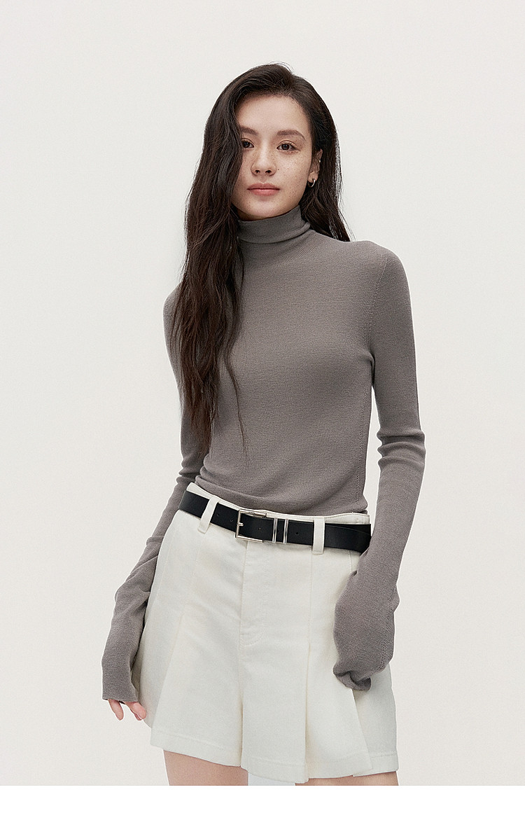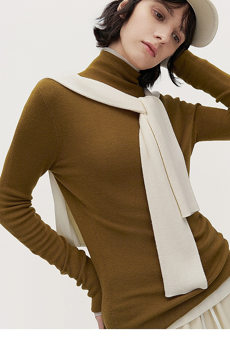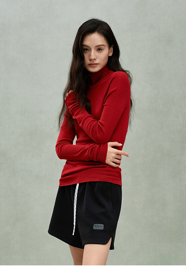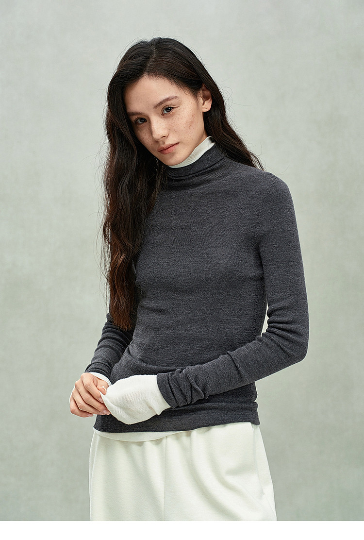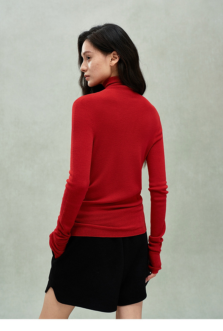 商品名称:可机洗进口100%美丽诺羊毛无缝一体毛衣女 684431
