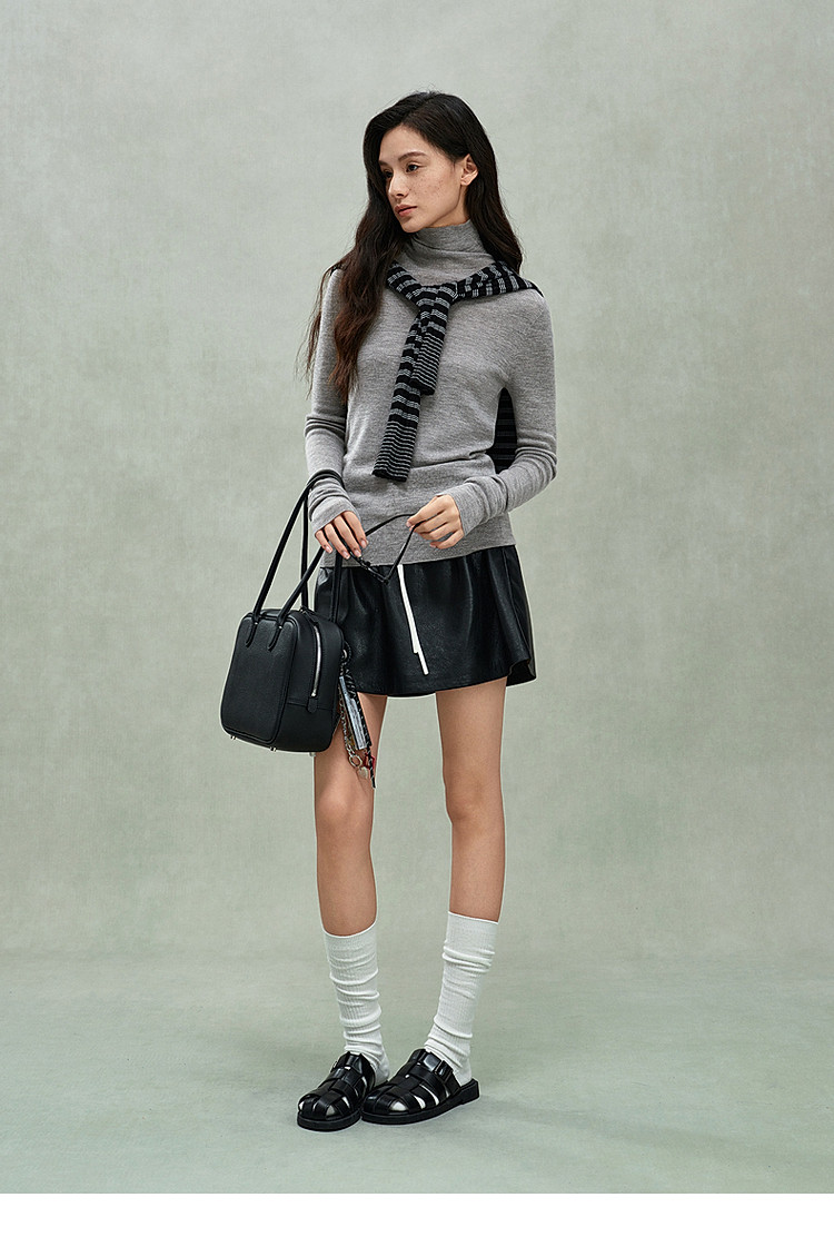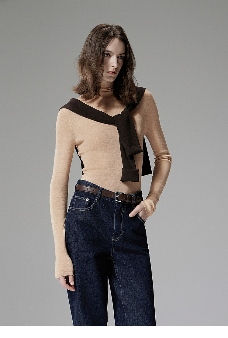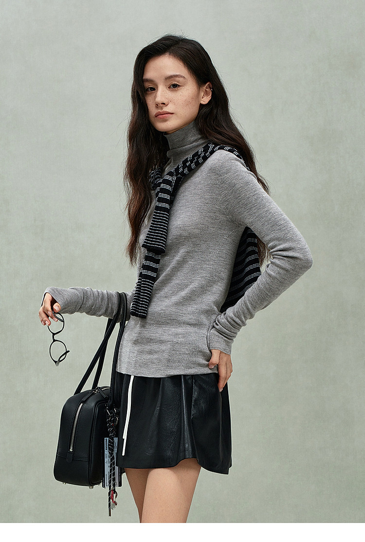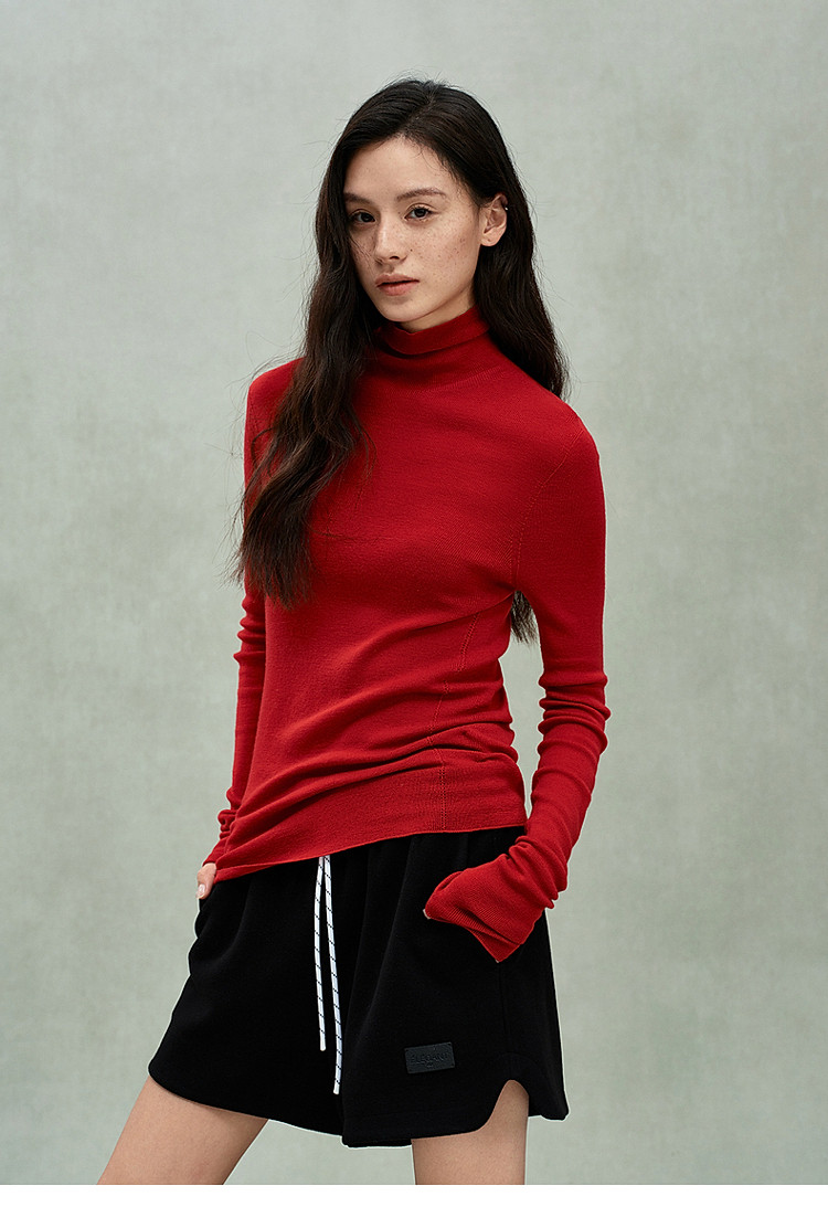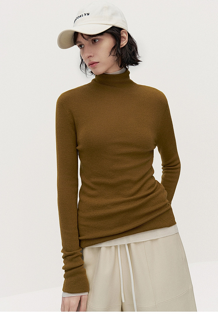 商品名称:可机洗进口100%美丽诺羊毛无缝一体毛衣女 684431