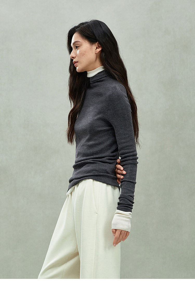 可机洗进口100%美丽诺羊毛无缝一体毛衣女 684431