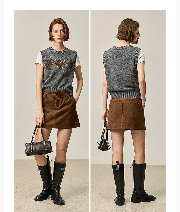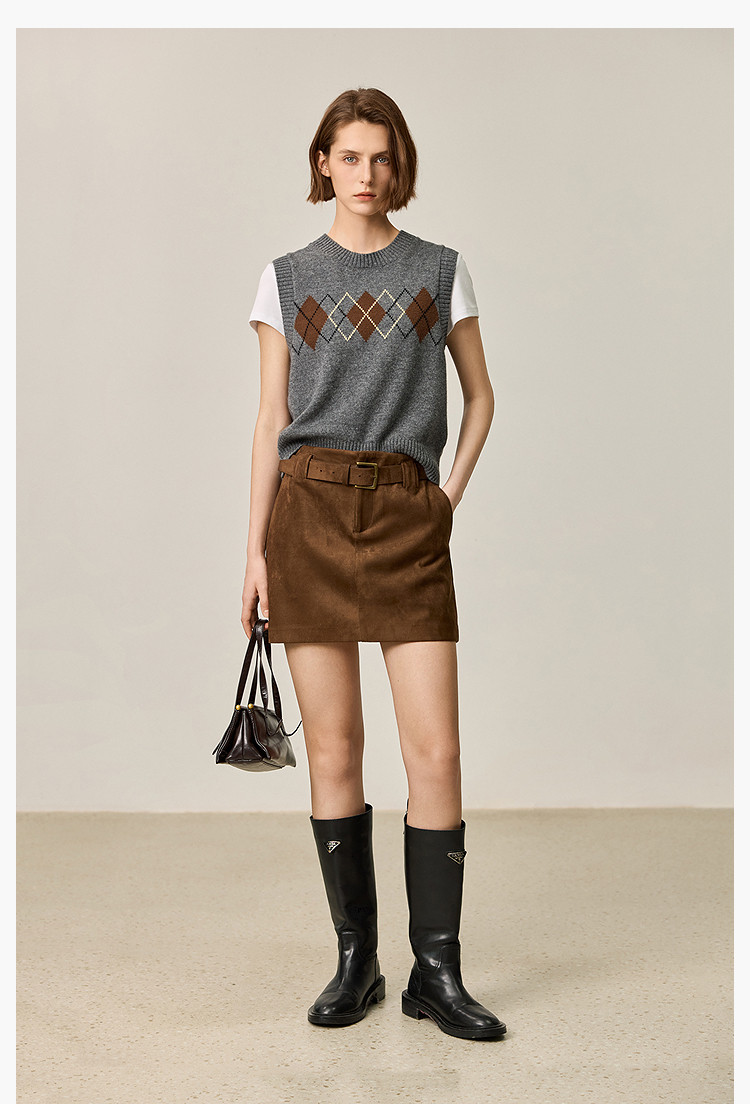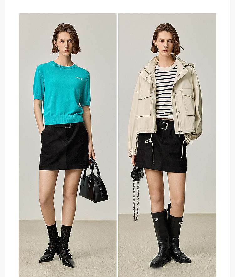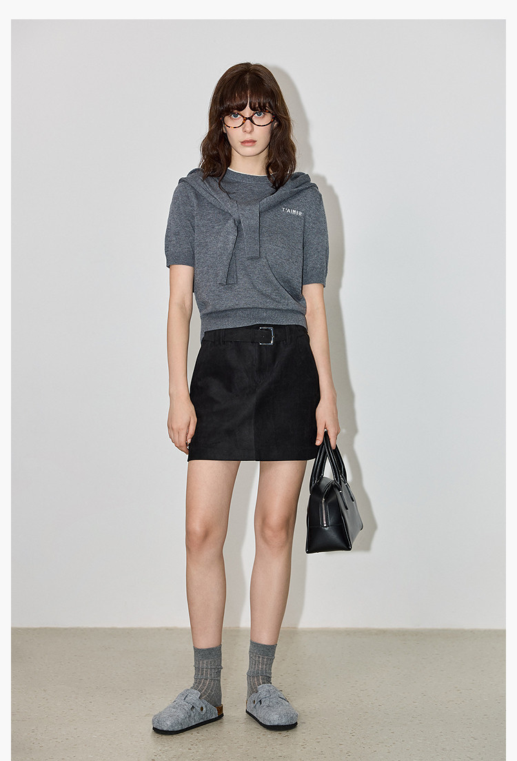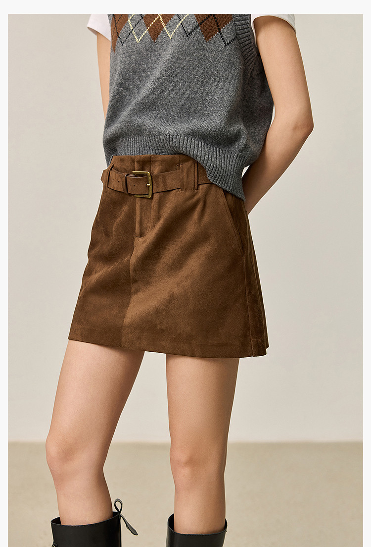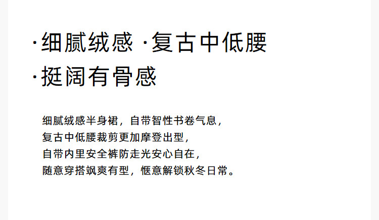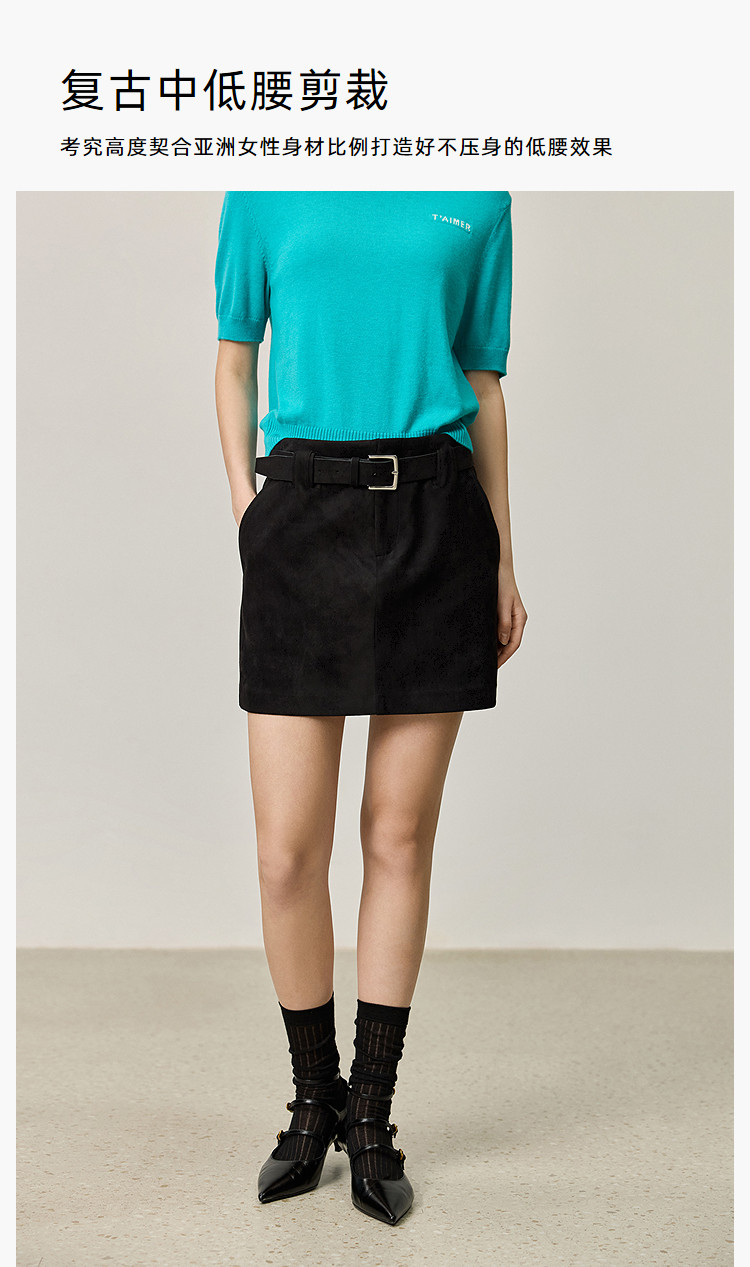 商品名称:【商场同款】2025春季复古麂皮绒感中低腰防走光微A字半身裙短款 190811