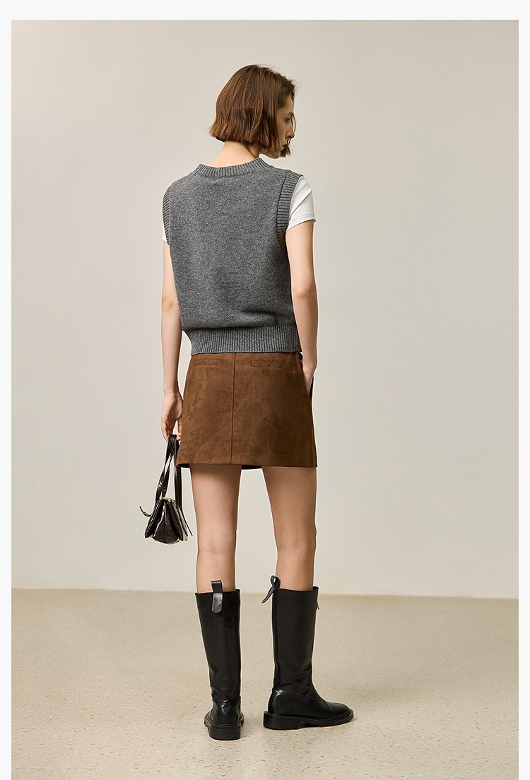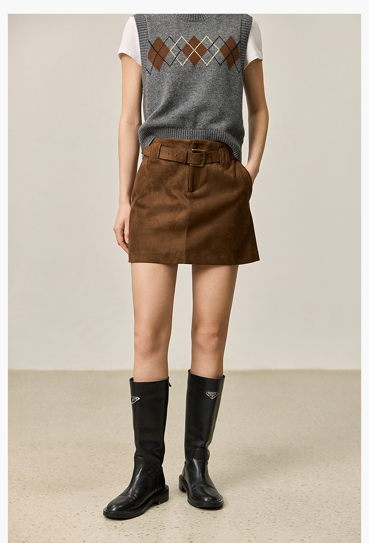 【商场同款】2025春季复古麂皮绒感中低腰防走光微A字半身裙短款 190811