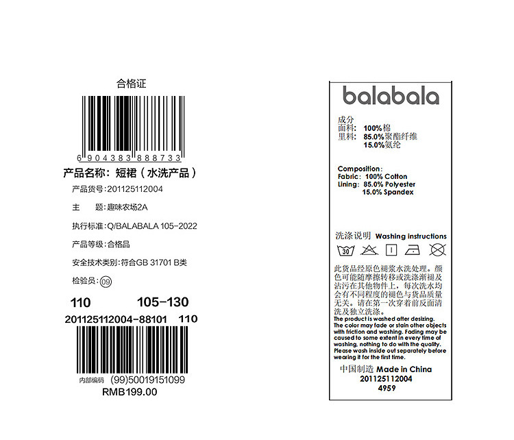 商品名称:巴拉巴拉童装女童短裙牛仔百褶裙2025春新款儿童裙子时尚百搭 575557