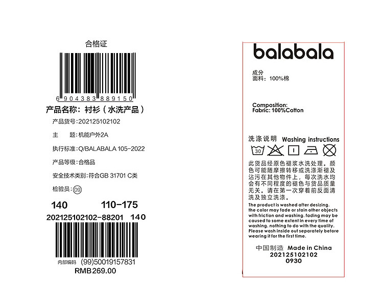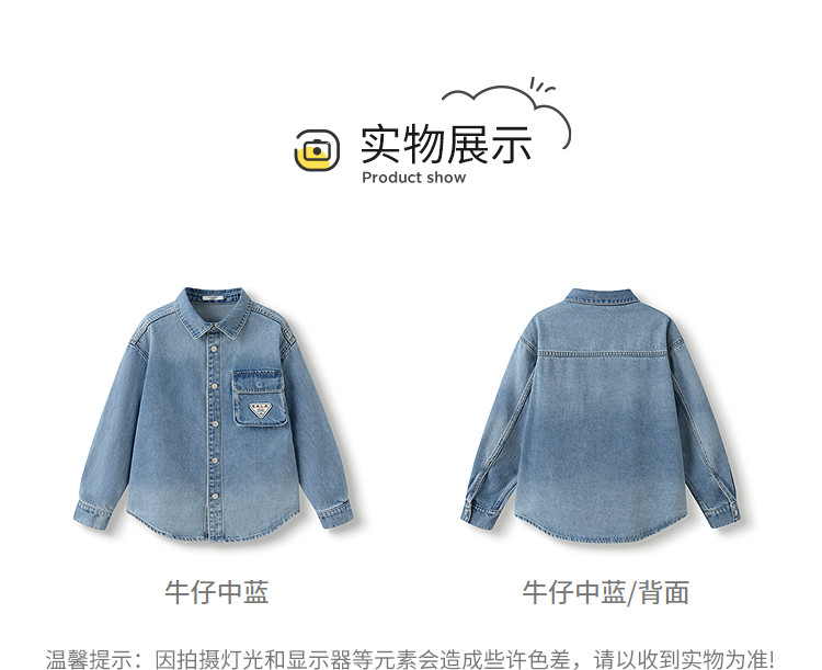 商品名称:巴拉巴拉童装男童长袖衬衫儿童上衣2025新春装翻领纯棉牛仔 815621