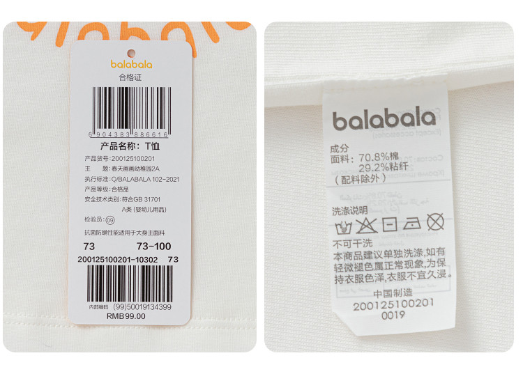 商品名称:【商场同款】巴拉巴拉童装婴儿长袖t恤男女童2025新款上衣萌 608901