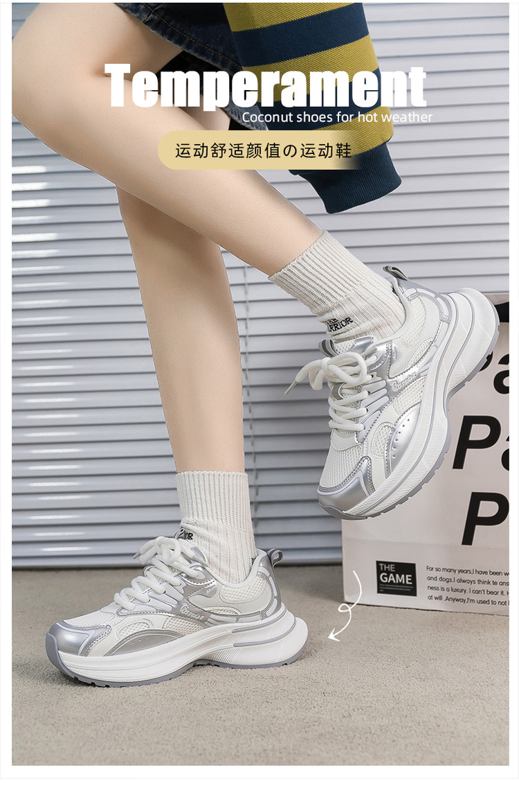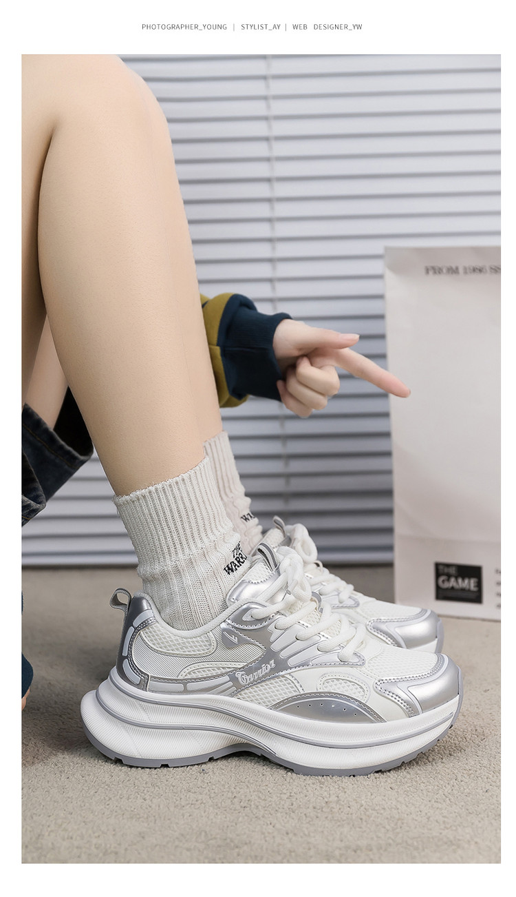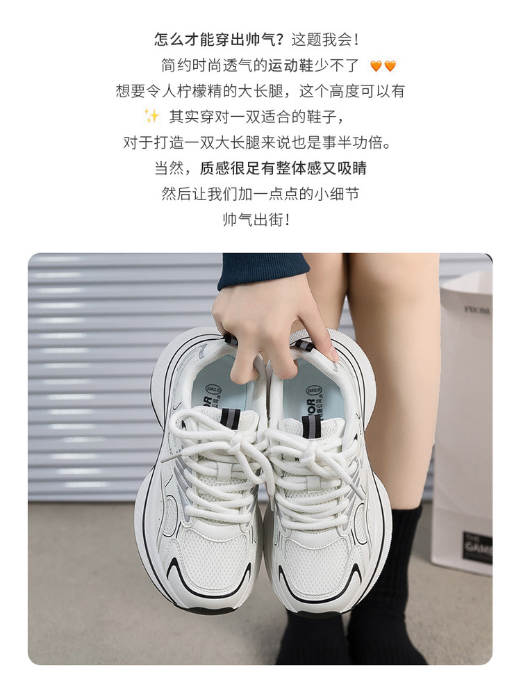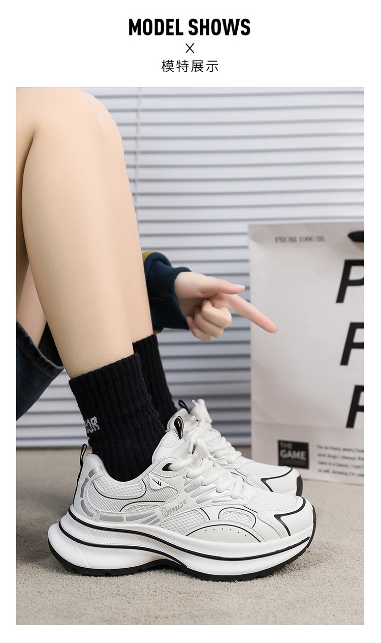 商品名称:舒适透气老爹鞋女25夏季新款女鞋厚底增高运动休闲鞋女复古百搭 471892