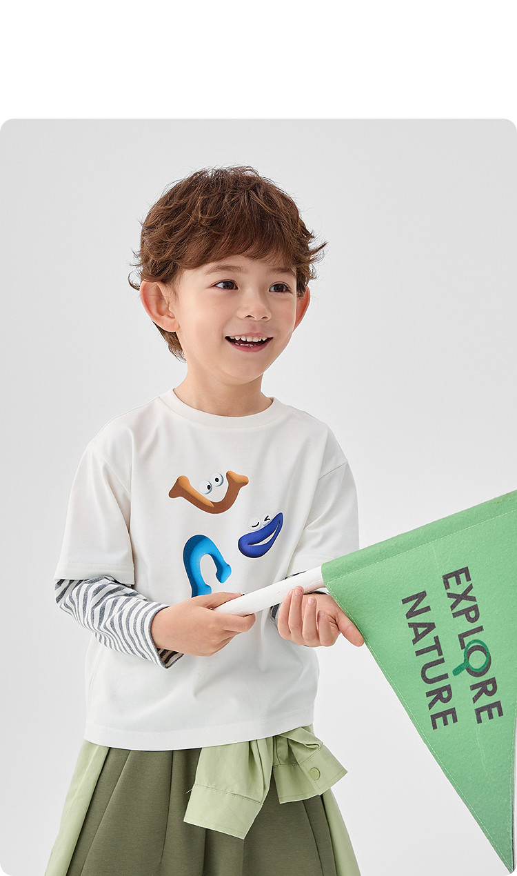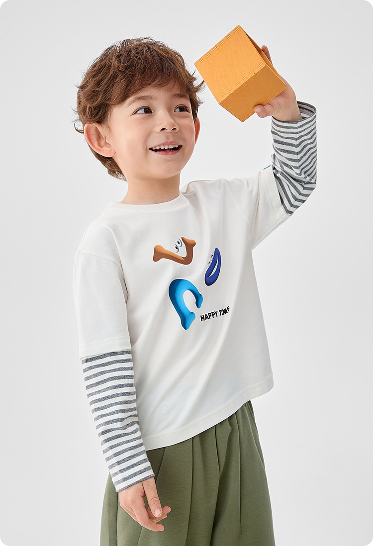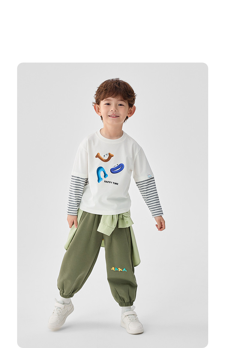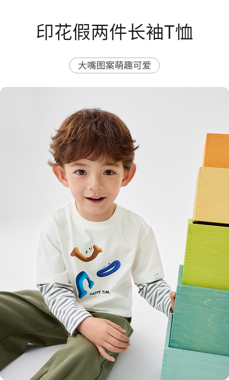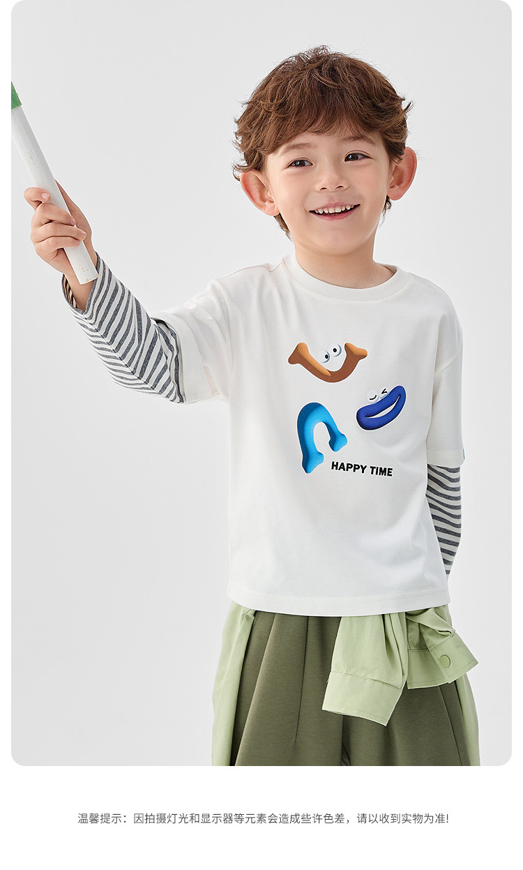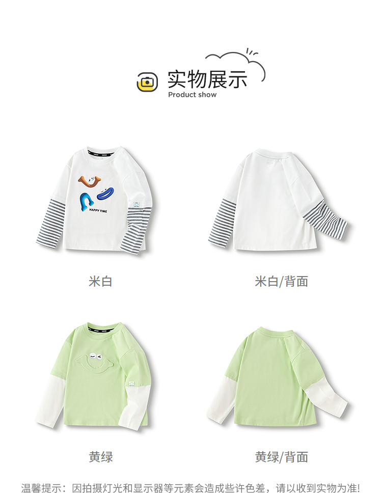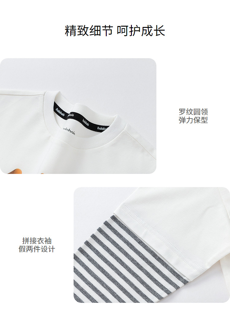 商品名称:巴拉巴拉童装男童长袖T恤假两件内搭2025春新款上衣卡通印花 307141
