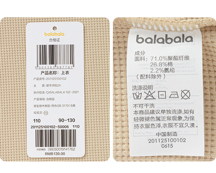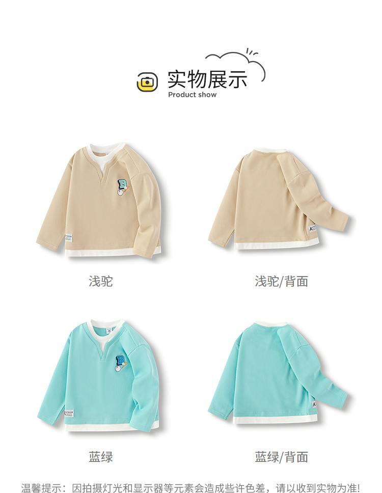 商品名称:巴拉巴拉童装男童长袖T恤假两件华夫格上衣2025新款春装时尚 336133