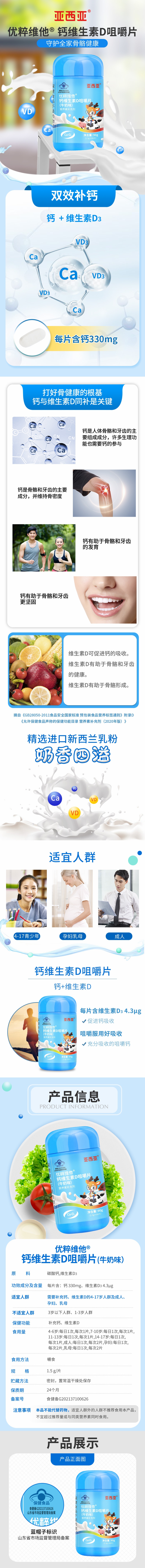 商品名称:亚西亚 钙维生素D咀嚼片 60片*2瓶(牛奶味)