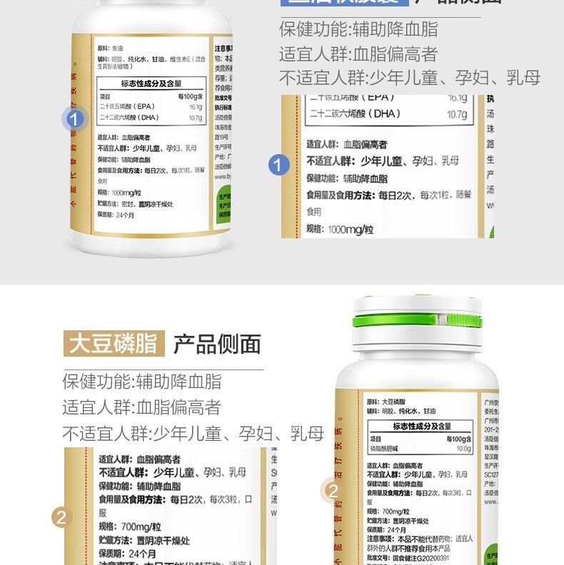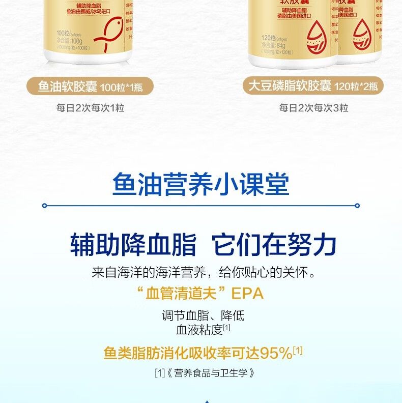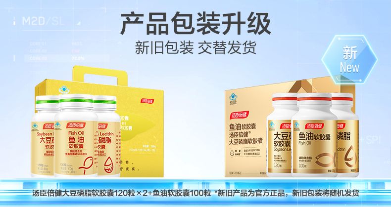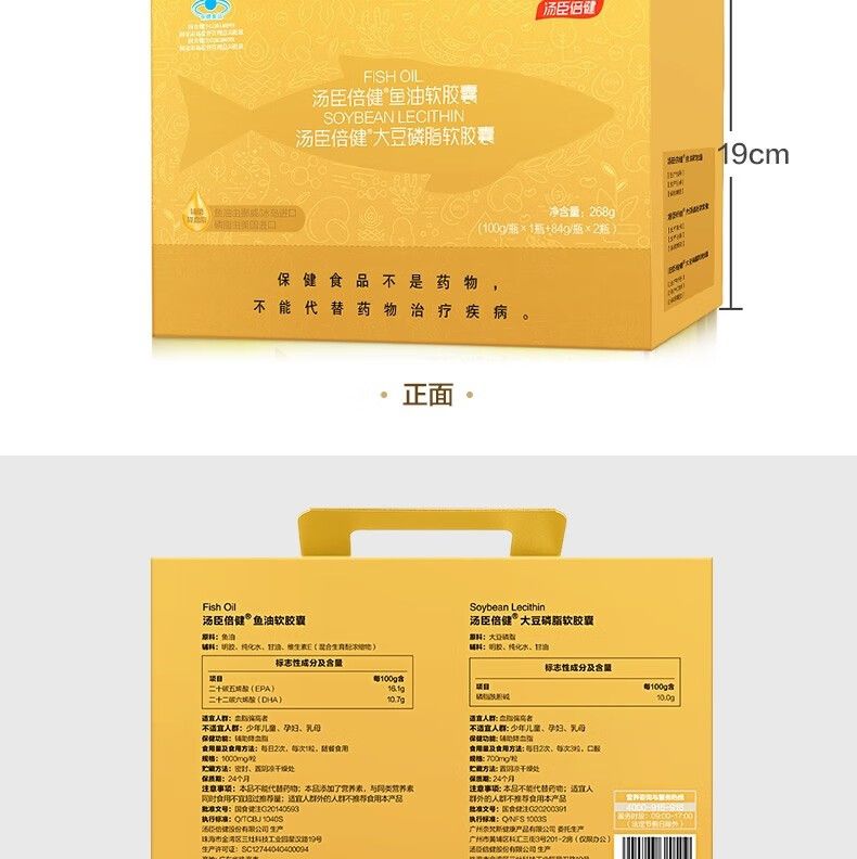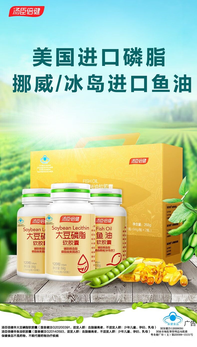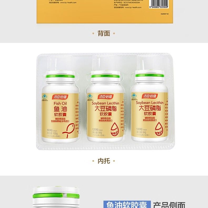 商品名称:汤臣倍健大豆磷脂软胶囊120粒×2+鱼油软胶囊100粒 搭DHA鱼肝油深海鱼油成人中老年辅助降血脂