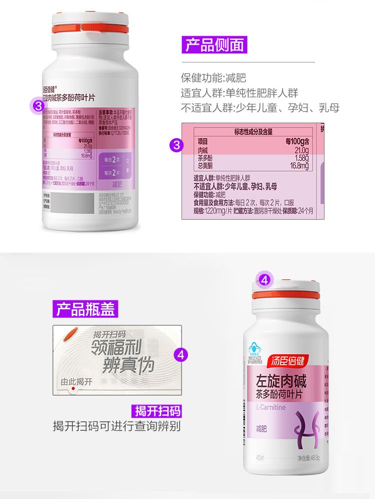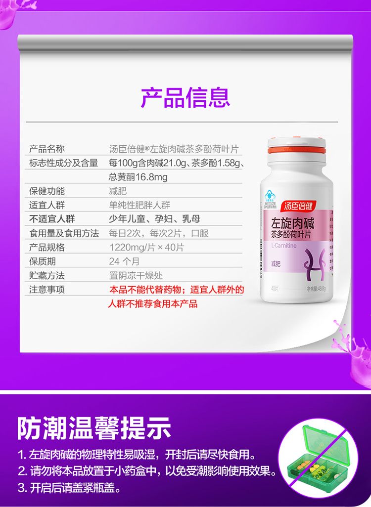 商品名称:汤臣倍健左旋肉碱茶多酚荷叶片(40片)*2 减肥瘦身搭档