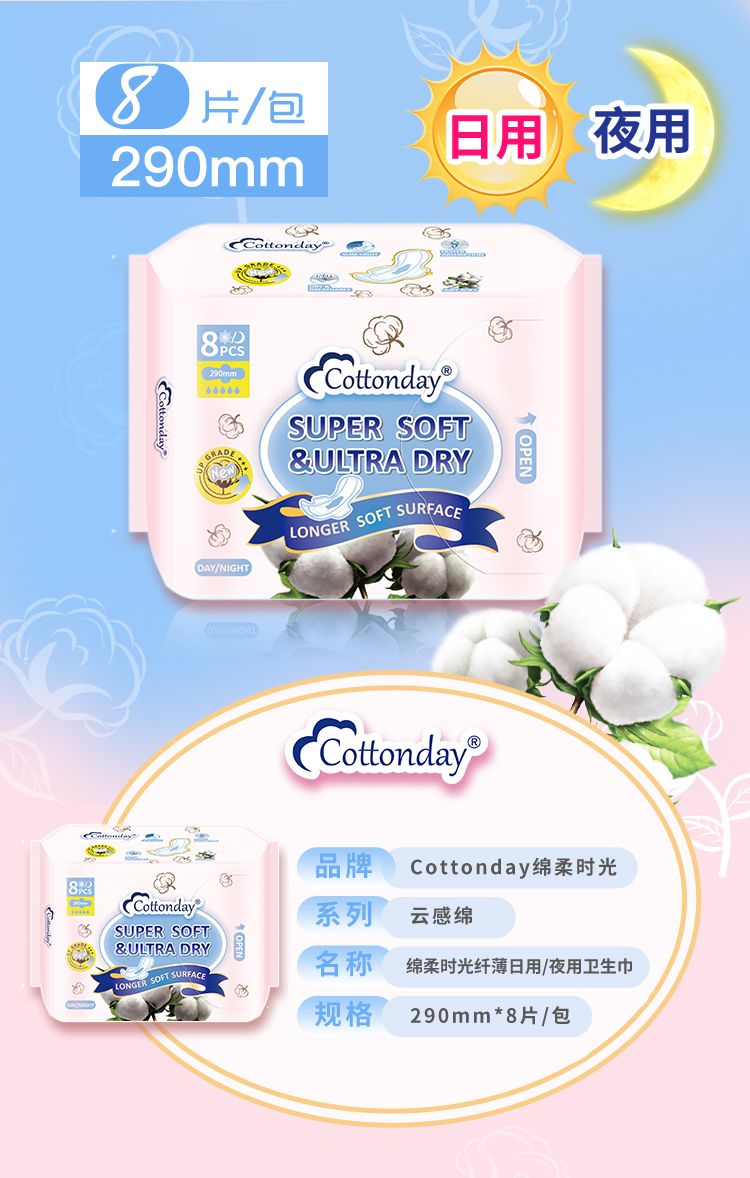 商品名称:COTTONDAY 绵柔时光纤薄云绵量多日用/夜用卫生巾