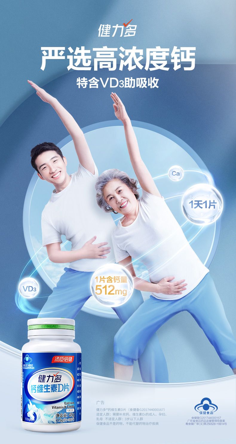 汤臣倍健 健力多钙维生素D片 30片*4瓶套装