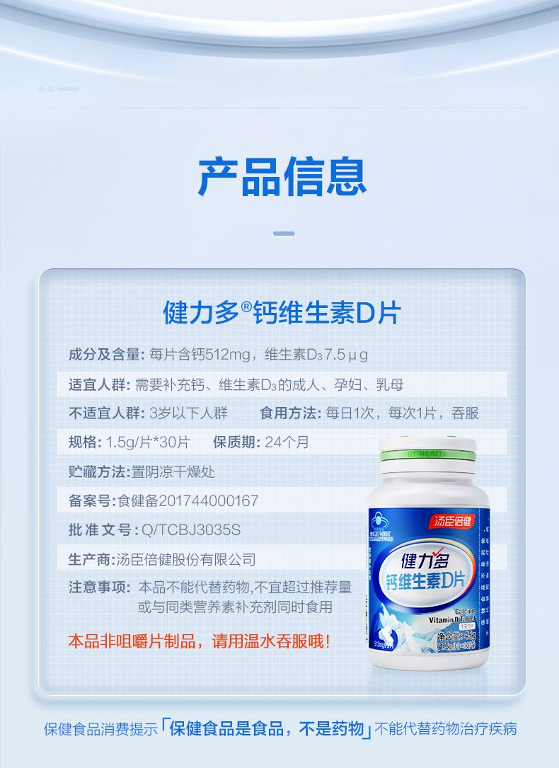 商品名称:汤臣倍健 健力多钙维生素D片 30片*4瓶套装