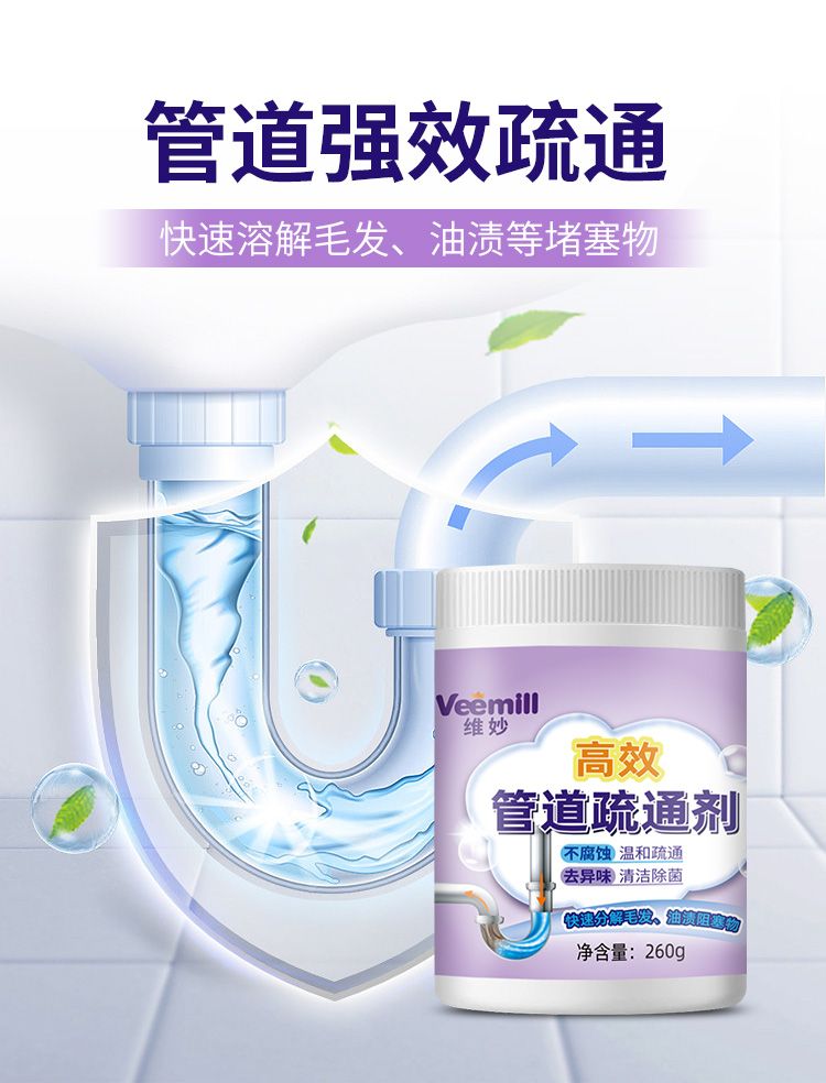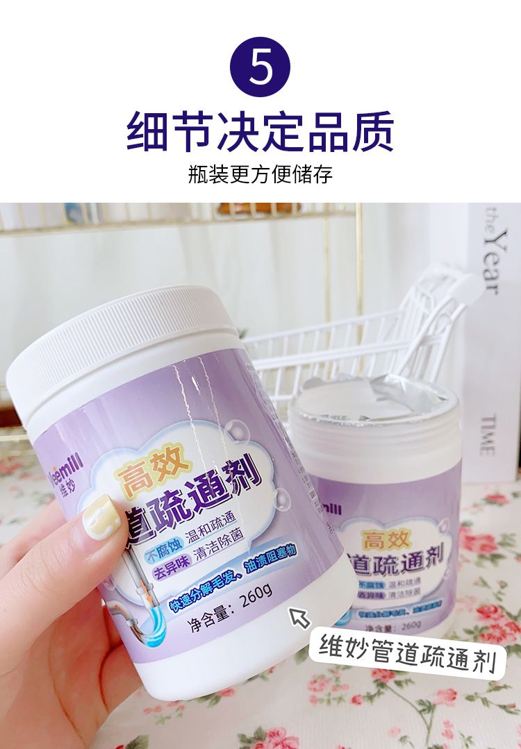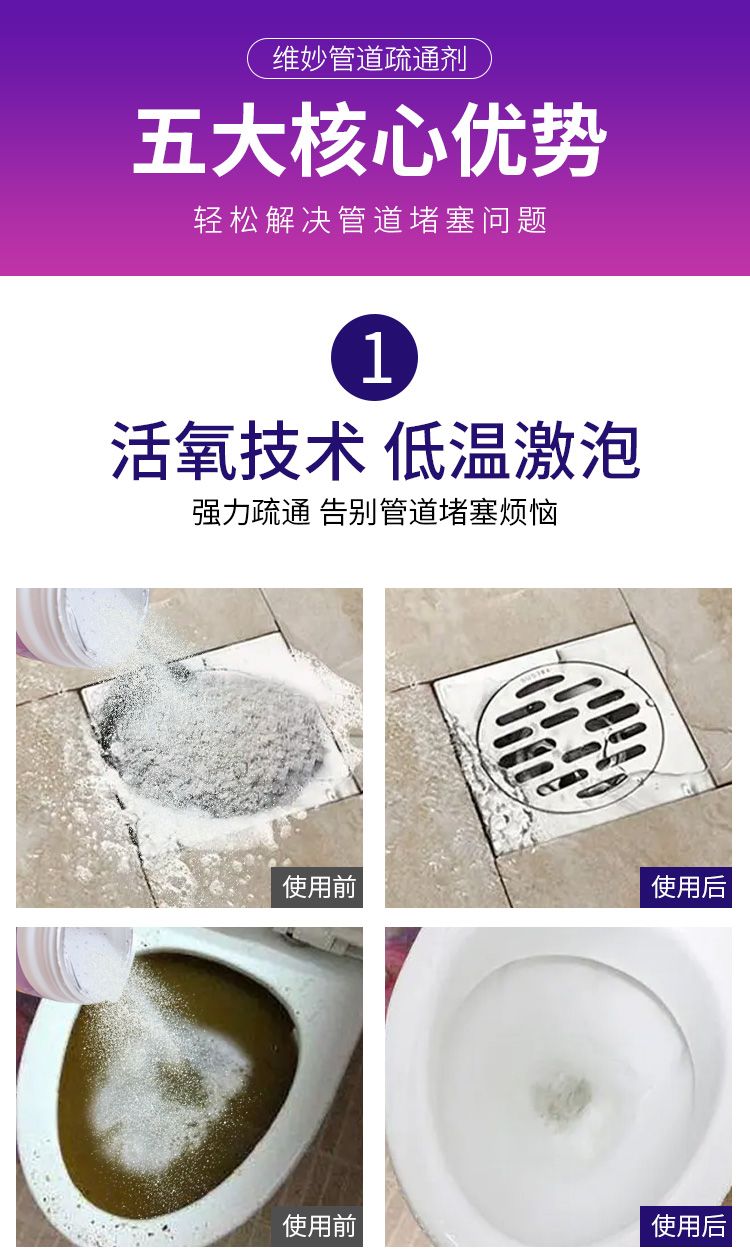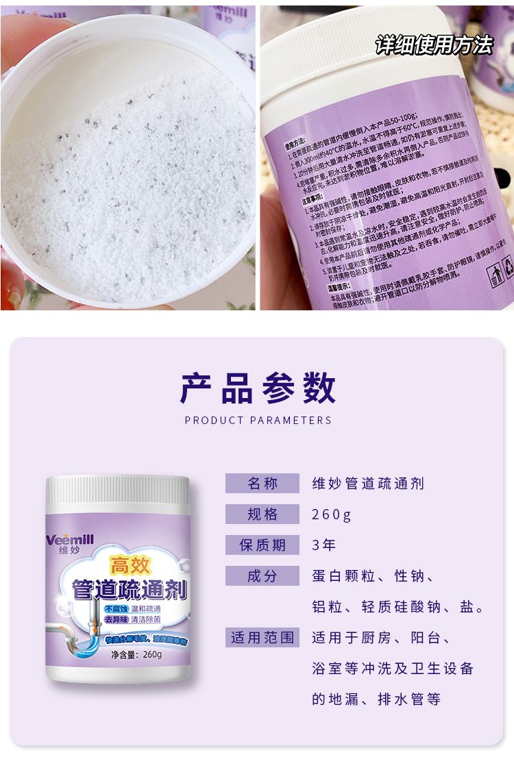 商品名称:维妙管道疏通剂强力溶解下水道神器厨房厕所万能清洁除臭一炮通250g/瓶