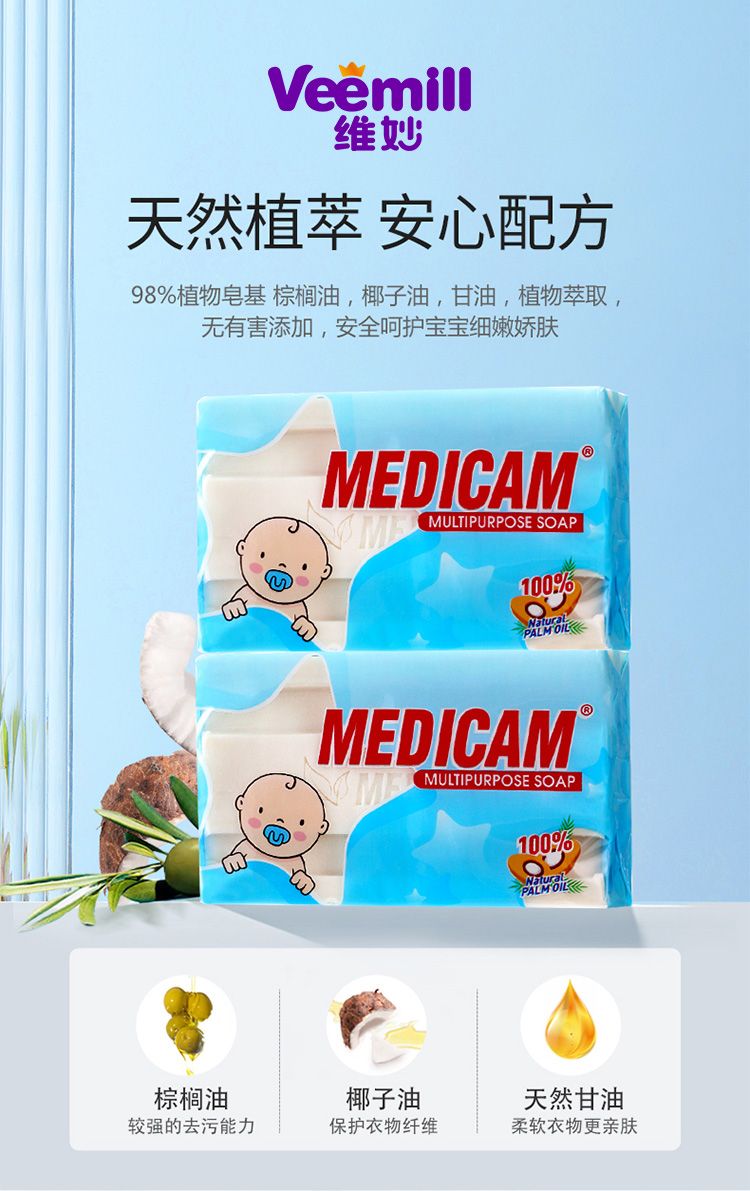 维妙多功能持久留香除菌洁净洗衣马赛皂 天然植萃温和不刺激滋润200g/支