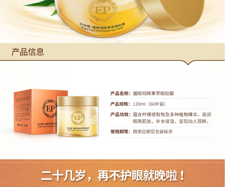 商品名称:泊泉雅媚眼明眸果萃眼贴膜 120ml/60片