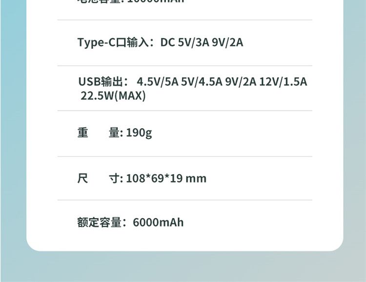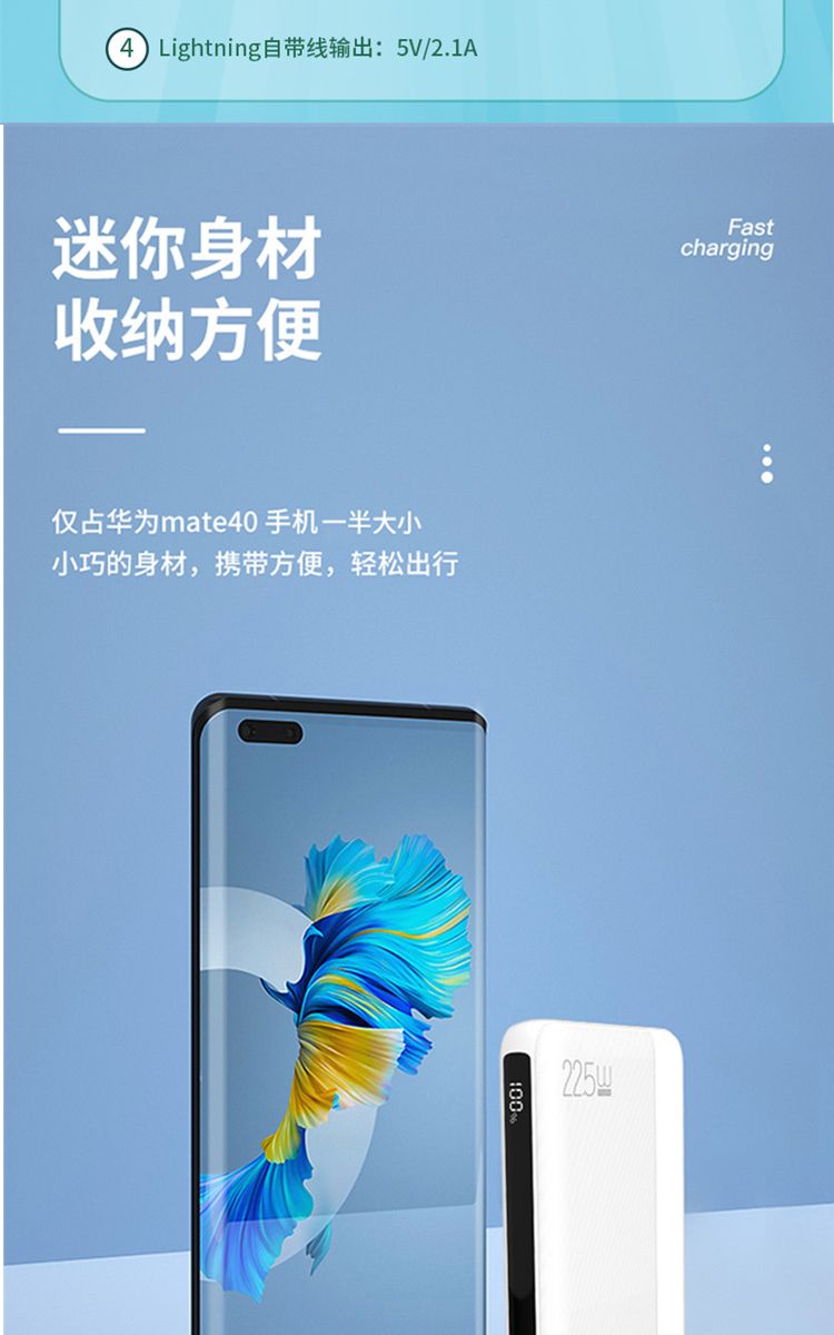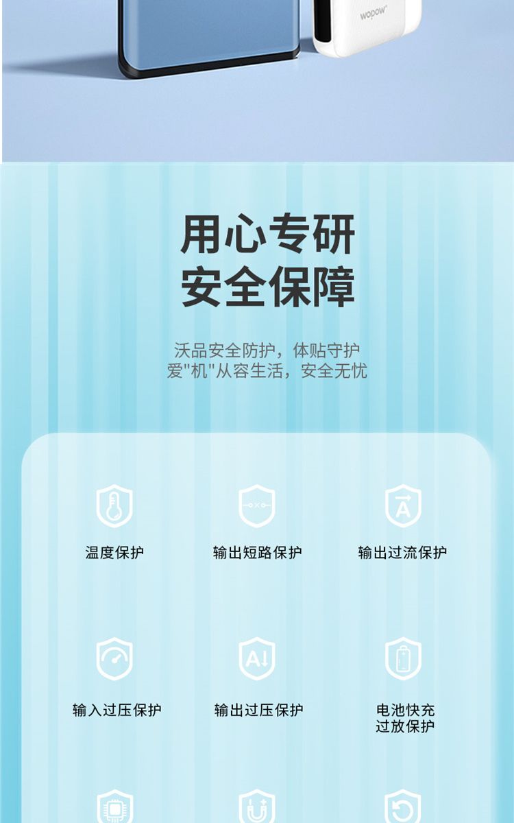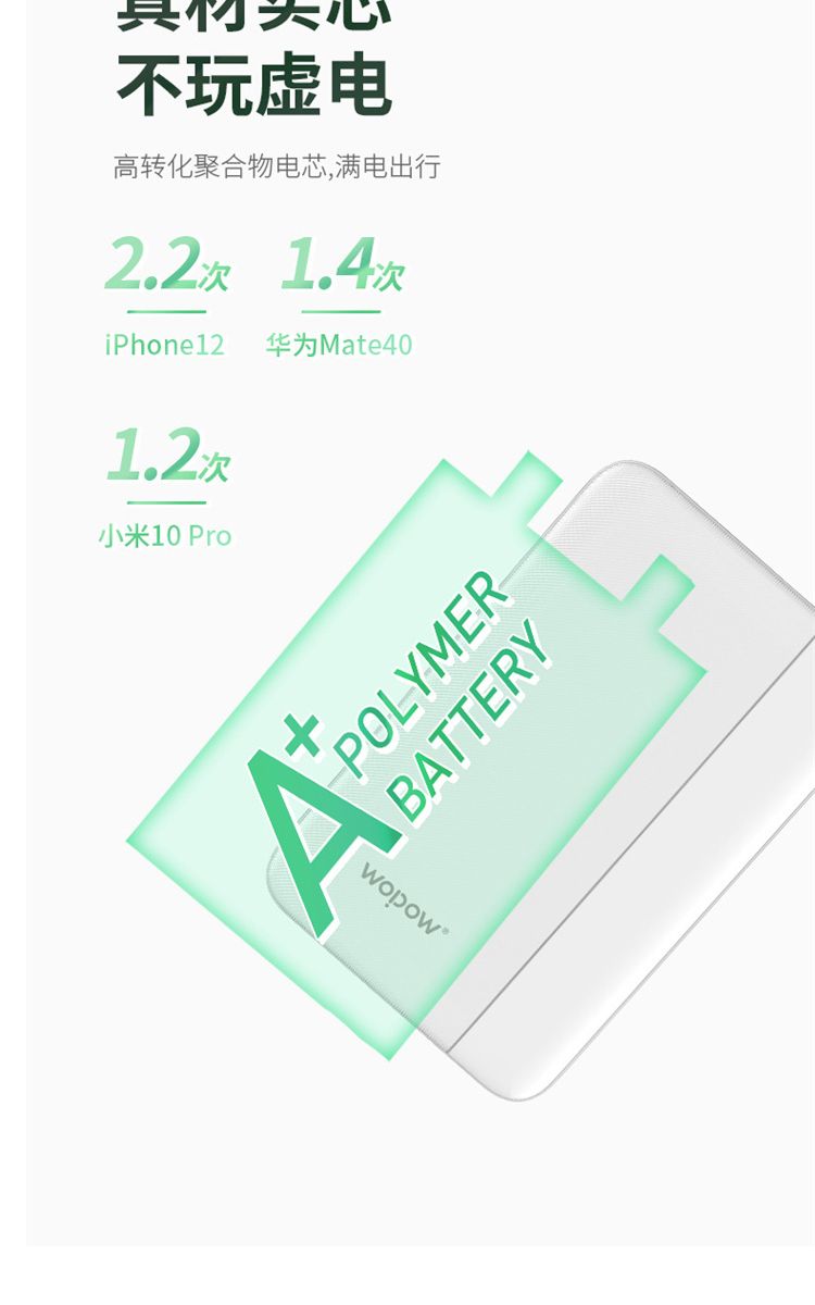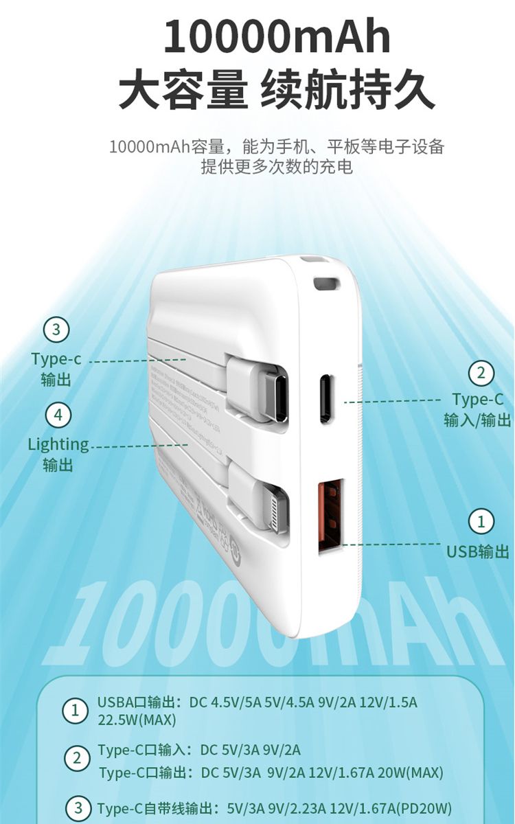 商品名称:沃品自带双线移动电源L28 双向快充小巧便携屏显22.5w大容量充电宝10000mAh