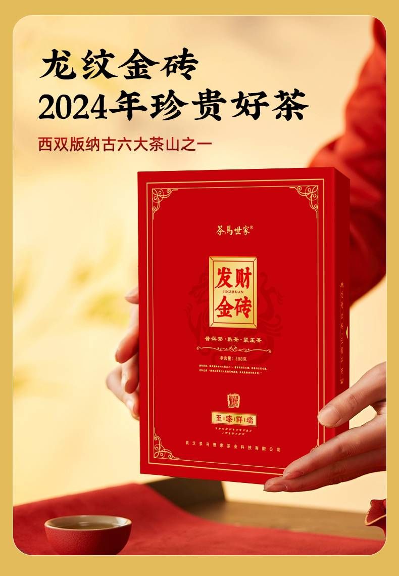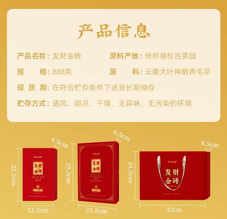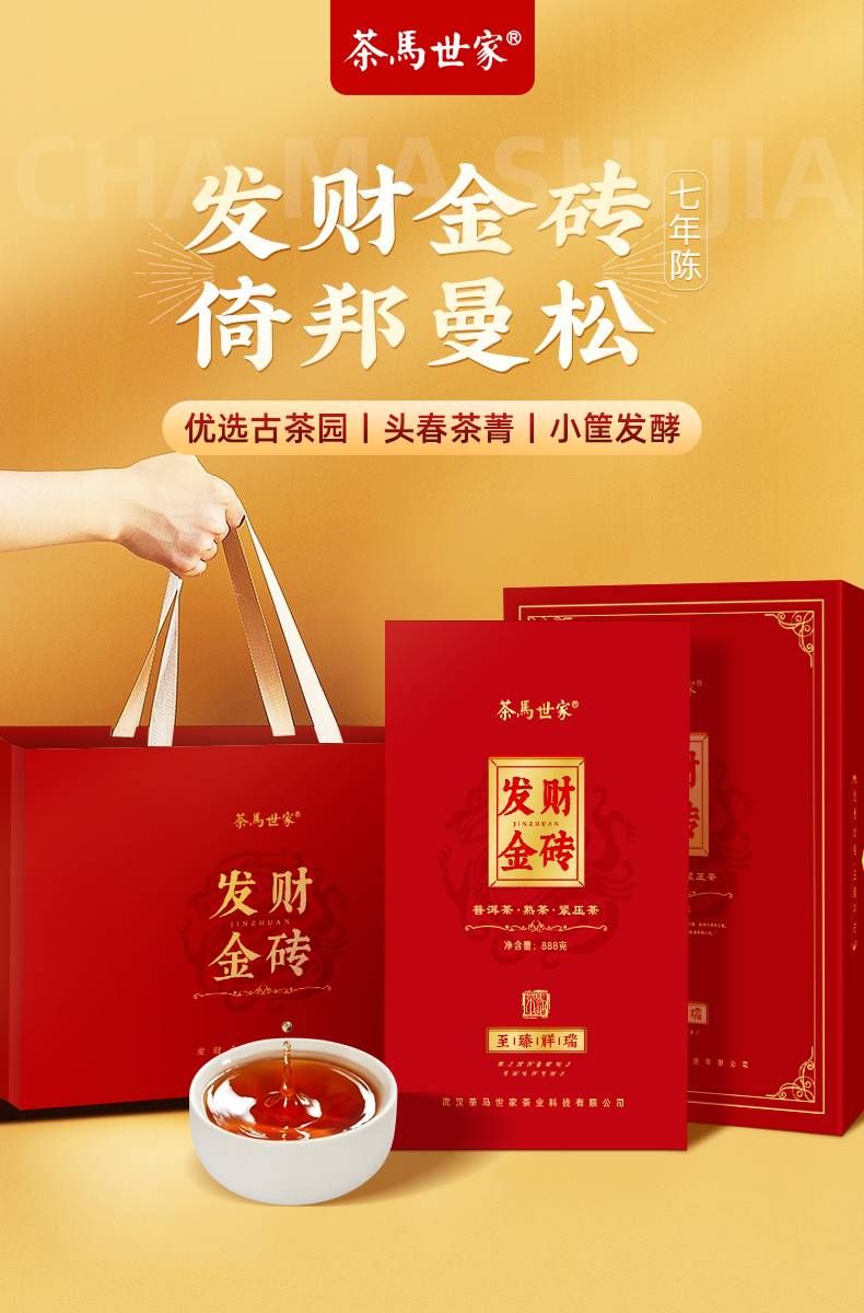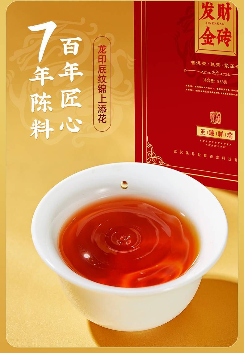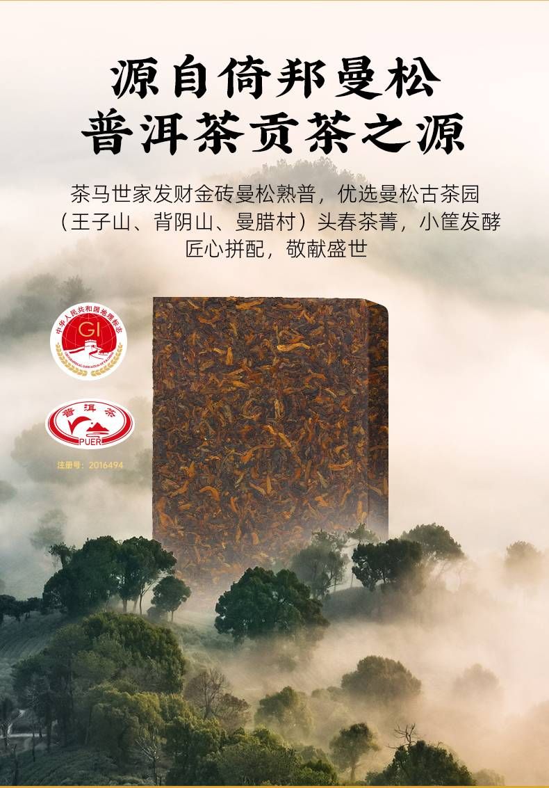 商品名称:茶马世家普洱熟茶发财金砖正宗云南曼松7年陈普洱茶砖礼盒装888g